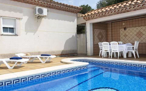 Belle villa confortable "Isabel", de 2 étages. À 500 m du centre de Miami Platja, situation tranquille, ensoleillée, à 1.5 km de la mer. A usage privé: terrain (clôturé), petit jardin, piscine rectangulaire (3 x 5 m, profondeur 110 - 190 cm, disponibilité saisonnière: 01.Jan. - 31.Dec.). WC dans l'espace piscine, barbecue, entretien de la piscine par le propriétaire/jardinier. Place de parking près de la maison. Supermarché, restaurant 500 m, arrêt de bus 1.2 km, gare ferroviaire "Hospitalet de l'Infant" 3.1 km. Terrain de golf 4 km. Attractions à proximité: Parque Portaventura 28 km, parque acuático Aquopolis 31 km, parque Natural del Delta del Ebro 53 km, Tarragona 37 km, Reus 30 km, Barcelona 132 km. Veuillez noter: voiture recommandée. Groupes de jeunes sur demande seulement. Route principale 300 m de la maison.