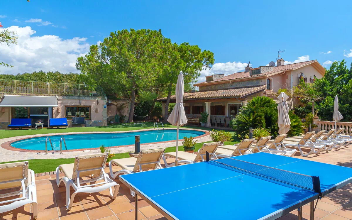 Belle, grande villa "Marjals", de 2 étages. Dans la localité, à 1.3 km du centre de Muro, à 10 km de la mer. A usage privé: piscine (10 x 4 m, profondeur 100 - 170 cm, disponibilité saisonnière: 01.Jan. - 31.Dec.). Jardinet, tonnelle, pergola, barbecue, entretien de la piscine par le propriétaire/jardinier. Infrastructures de la Maison: réduit pour bicyclettes, air-conditionné. Place de parking près de la maison sur le terrain. Supermarché 120 m, restaurant 900 m, boulangerie 900 m, centre à 15 minutes à pieds, arrêt de bus 1.4 km, gare ferroviaire 3 km, ferry "Port Alcúdia" 22 m, plage de sable "Playa de Muro" 10 km. Port plaisance 11 km, terrain de golf (18 trous) 24 km, piste cyclable 500 m. Attractions à proximité: Sa Pobla- Sta Margalida - Can Picafort, Ciudad Romana d'Alcúdia 22 km, Santuari de Lluc 28 km, Colonia de St Pere - Son Serra de Marina. Région de randonnées: Serra de Tramuntana, Finca de Son Real. Bien convenant à 16 adultes. Le propriétaire n'accepte pas les groupes de jeunes. Veuillez noter: route principale à proximité 50 m de la maison. Aéroport 48 km de la maison.