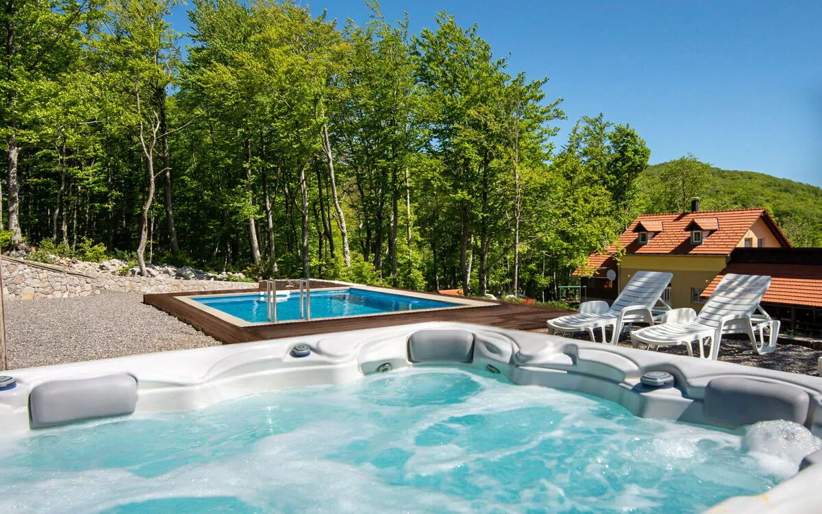 Chalet "Didova suma 2", de 2 étages, environné par les arbres. Dans le haut de la station de Senj, dans le hameau d'Alan, à 19 km du centre de Senj, situation isolée, tranquille, à 19 km de la mer, dans la forêt. En commun: terrain 5'000 m2 avec arbres. Terrain de pétanque. A usage privé: terrain 3'000 m2, piscine rectangulaire (6 x 4 m, profondeur 150 cm, disponibilité saisonnière: 01.Jun. - 15.Sep.). Douche extérieure, bain à remous  , terrasse (100 m2), meubles de jardin, barbecue, entretien de la piscine par le propriétaire/jardinier. Infrastructures de la Maison: accès internet, chauffage central, lave-linge. Accès en voiture jusqu'à la maison (100 m chemin non goudronné). Place de parking près de la maison sur le terrain. Magasins 19 km, restaurant 19 km, arrêt de bus 16.3 km, plage de galets 19 km, plage bétonnée 19 km. Chemins de randonnées pédestres depuis la maison, piste cyclable 20 m.