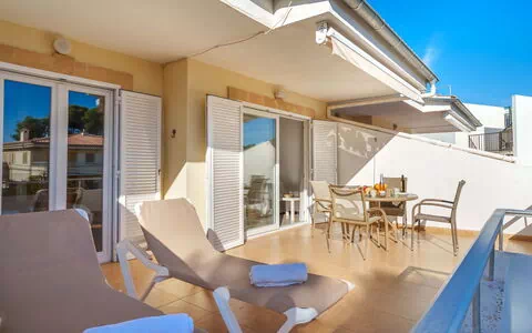 Petite résidence simple, confortable "Playa Blanca". Dans la localité, à 2 km du centre de d'Alcúdia, excellente situation: centrale mais tranquille, à 1.5 km de la forêt, à 60 m de la mer, à 60 m de la plage, route à traverser. En commun: douche extérieure. Infrastructures de la Maison: air-conditionné. Place de parking près de la maison sur le terrain. Place de parking ou garage pour voiture de petite - moyenne dimension. Dimension: hauteur 181 cm. Magasins, magasin d'alimentation 500 m, supermarché 900 m, restaurant, bar 100 m, centre à 20 minutes à pieds, arrêt de bus "Ciutat Blanca 1 (3060)" 400 m, ferry-boat "Port d'Alcúdia" 3.2 km, plage de sable "Playa d'Alcúdia" 60 m. Port plaisance 2.5 km, marina 2.5 km, terrain de golf (18 trous) 5.6 km, chemins de randonnées pédestres depuis la maison 1.5 km, piste cyclable 1 km. Attractions à proximité: Alcúdia Old Town 3.6 km, Playa de Muro 3 km, Can Picafort 8 km, Palma City 52 km, Playa y Faro de Formentor 25 km, Mallorca Fashion Outlet & Cinemas 43 km. Les lacs connus sont facilement accessibles: Lago Mayor. Région de randonnées: Puig de Sant Martí, Albufera de Mallorca, Atalaya d'Alcúdia. Veuillez noter: sans ascenseur. Bien convenant à 4 adultes. Le propriétaire n'accepte pas les groupes de jeunes. Aéroport 60 km de la maison. D’autres appartements sont également proposés à la location dans cette maison de vacances. La propriété référencée ES8356.170.1 est située sur le même terrain. Environnement très sensible au bruit. Silence et bonne tenue exigés.