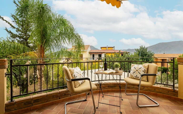 "Orchidea", apt 3 pièces 65 m2 au 1er étage. Aménagement confortable et plaisant: séjour/salle à manger avec table pour les repas, TV (satellite) et air-conditionné. Sortie sur la terrasse. 1 chambre avec 2 lits et air-conditionné. 1 chambre double avec air-conditionné. Sortie sur la véranda. Coin cuisine (four, 4 feux, bouilloire électrique, micro-ondes, cafetière électrique). Douche/bidet/WC. Air-conditionné, chauffage à air chaud, chauffe eau (50 litres). Terrasse 16 m2, couverte. Meubles de terrasse. Vue sur les alentours. A disposition: fer à repasser, chaise haute pour enfant, lit bébé (en sus), sèche-cheveux. Place de parking (1 Voiture) près de la maison. IT111042C2000R6543