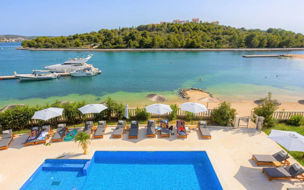 Complexe de vacances accueillant "Perla Resort". À 900 m du centre de Rogoznica, situation ensoleillée, juste au bord de la mer, juste au bord de la plage. En commun: 2 piscines rectangulaire (80 m2, profondeur 150 cm, disponibilité saisonnière: 01.Mai. - 31.Oct.) avec marches intérieures. Douche/WC dans l'espace piscine. Infrastructures de la résidence: réception, restaurant, bar, blanchisserie (en sus). Petit-déjeuner (inclus). Place de parking près de la maison. Magasins, arrêt de bus 500 m, plage de graviers 10 m. Marina 2 km. Veuillez noter: place d'amarrage privée, sur demande. La photo ne montre qu’un exemple de location de vacances.