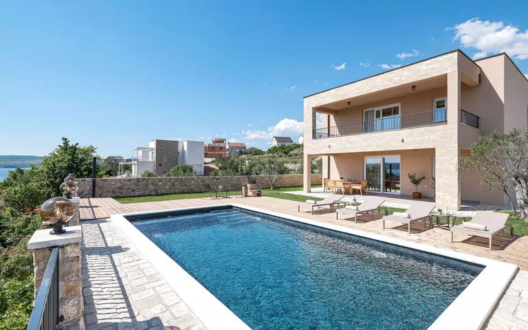 Villa moderne "Grota", de 2 étages, année de construction 2024. À 28 km du centre de Zadare, situation ensoleillée, surélevée, à 180 m de la mer, à 600 m de la plage, dans une rue. A usage privé: terrain 1'000 m2 (clôturé), piscine rectangulaire (8 x 4 m, profondeur 150 cm, disponibilité saisonnière: 02.Mai. - 26.Sep.). Meubles de jardin, barbecue. Infrastructures de la Maison: accès internet, lave-linge. Place de parking (pour 3 voitures) près de la maison sur le terrain. Magasins 1 km, restaurant 1.5 km, arrêt de bus 3.2 km, plage de graviers 600 m, plage de galets 180 m. Attractions à proximité: NP Paklenica 17 km, rafting Zrmanja 35 km. Groupes de jeunes sur demande seulement.