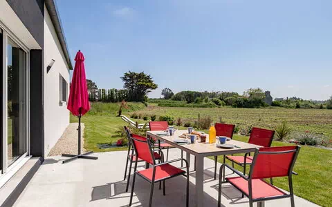 "La maison du Lividig", maison 4 pièces 90 m2. Clair, aménagement confortable et agréable: séjour/salle à manger 30 m2 avec poêle suédois et TV (écran plat). Sortie sur le jardin, sur la terrasse. 1 chambre avec 1 grand-lit (140 cm, longueur 190 cm), TV. 1 chambre avec 1 lit (90 cm, longueur 190 cm), 1 couchage (80 cm, longueur 190 cm). 1 chambre avec 1 grand-lit (140 cm, longueur 190 cm). Cuisine ouverte (four, lave-vaisselle, 4 plaques à induction, grille-pain, bouilloire électrique, micro-ondes, congélateur, cafetière électrique, Capsules pour machine à café (L'OR Philips) (NON INCLUSES), appareil à raclette) avec bar. Douche, WC séparé, double vasque. Meubles de terrasse, chaises longues (2). A disposition: lave-linge, fer à repasser, chaise haute pour enfant, lit bébé jusqu'à 2 ans, sèche-cheveux. Internet (Connexion WIFI, gratuit). Veuillez noter: maison non-fumeur. Détecteur de fumée. Performance énergétique A, maison basse consommation, empreinte carbone classe A (135kg de CO2/an). Annonce d'un particulier (art 155, IV du CGI).