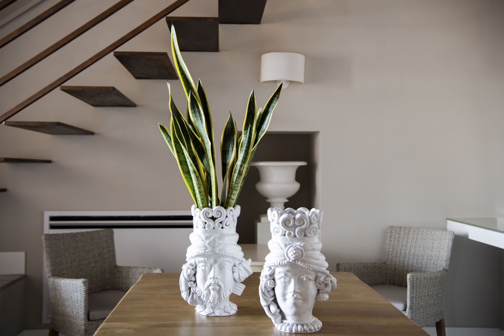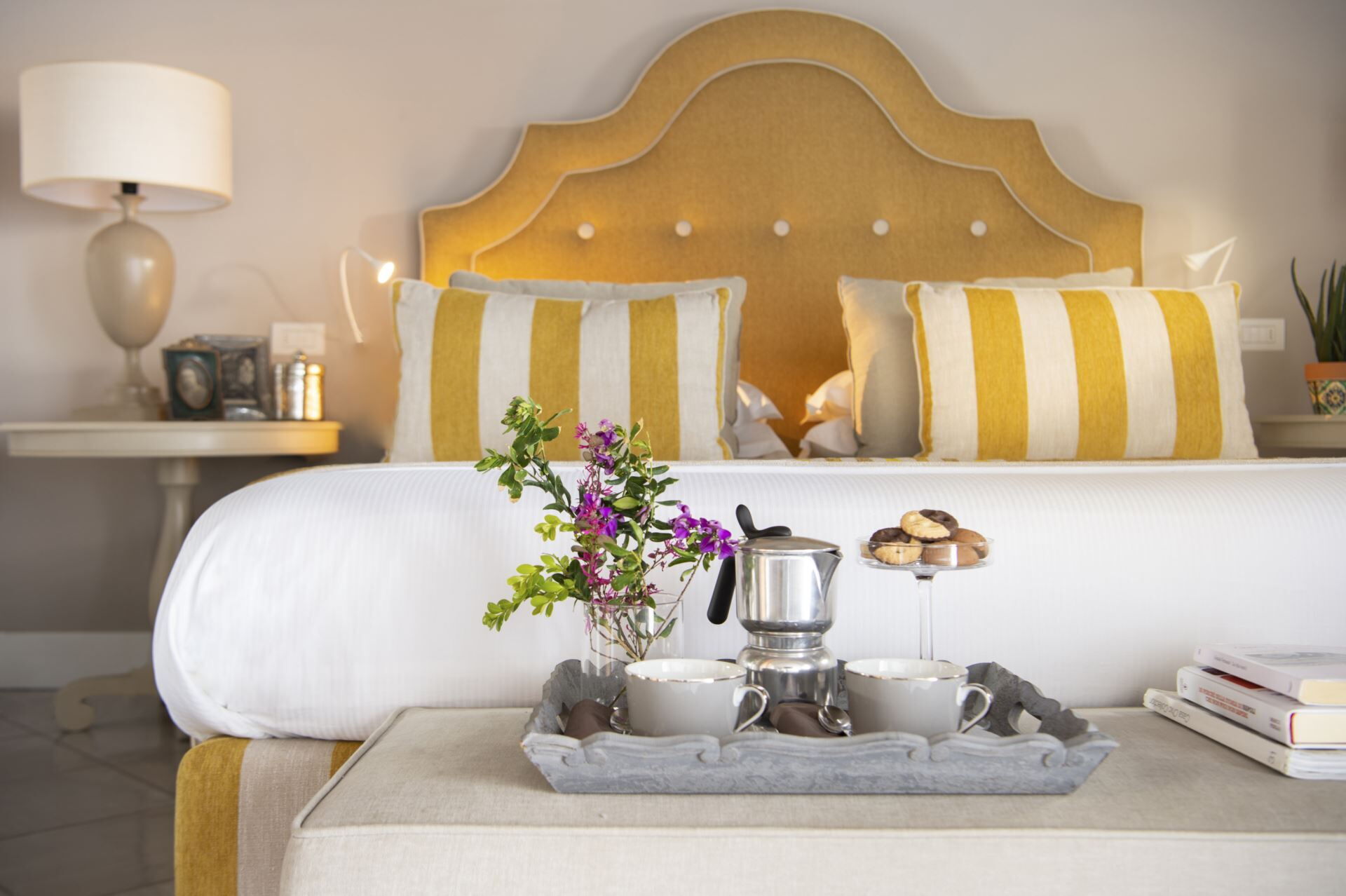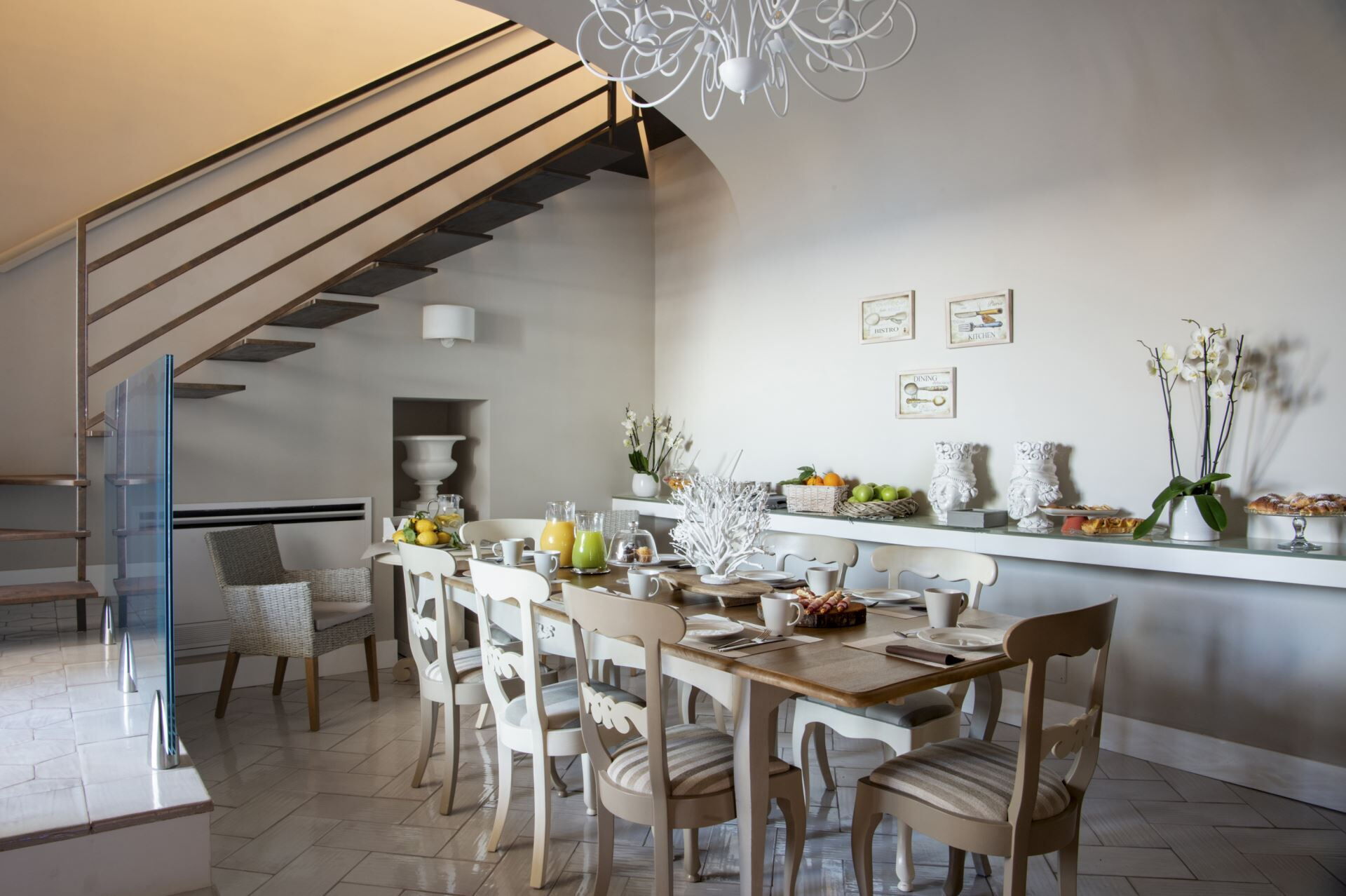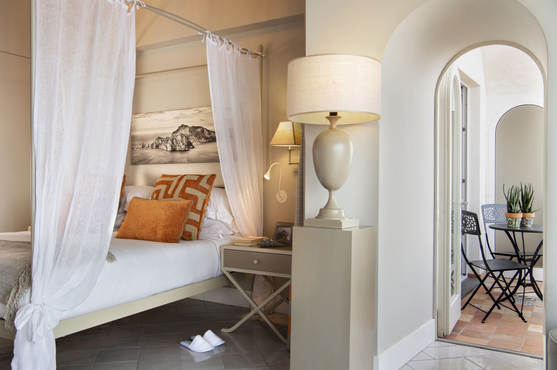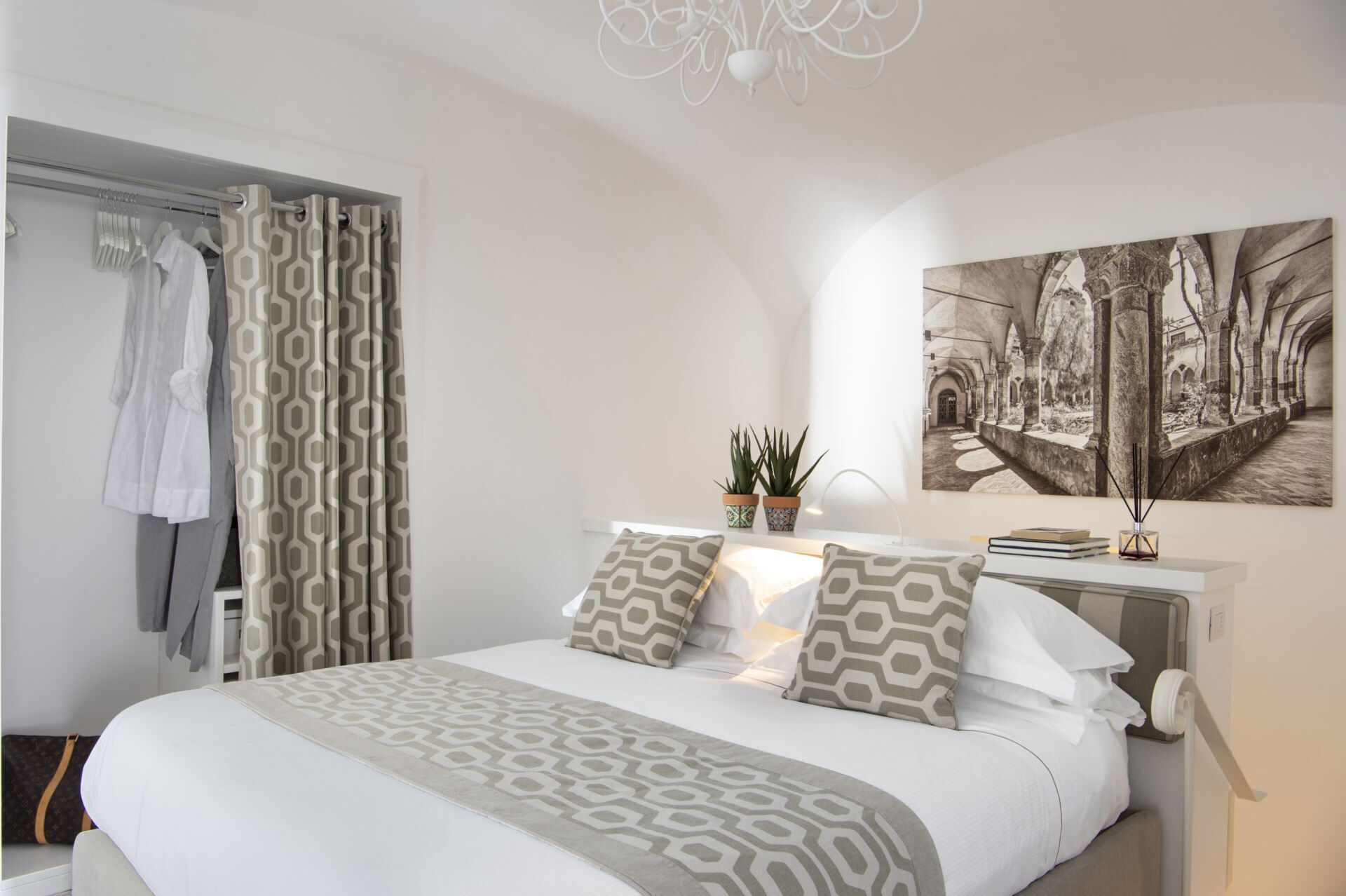 Villa Gilda accueille jusqu'à 9 personnes dans 5 chambres élégamment aménagées desservies par 4 salles de bains, réparties sur deux étages reliés par un escalier intérieur de 22 marches. À l'étage supérieur, vous trouverez un salon lumineux meublé de grands canapés et fauteuils, offrant un espace accueillant pour la détente. La première chambre de ce niveau présente un lit à baldaquin romantique et un futon confortable, ainsi qu'une télévision par satellite, un petit réfrigérateur vintage et un dressing, avec accès à une terrasse offrant des vues sur le Vésuve et la mer. La deuxième chambre contient un lit double, une télévision, un coffre-fort et un dressing, également avec son propre balcon surplombant le Vésuve et la mer. La troisième chambre est meublée d'un lit double pouvant être configuré en deux lits simples sur demande, ainsi que d'un coffre-fort et d'un dressing. La première salle de bains de l'étage supérieur dispose d'un double lavabo et d'une grande cabine de douche avec un joli hublot offrant des aperçus du golfe de Naples, accessible depuis le salon. La deuxième salle de bains, adjacente aux deuxième et troisième chambres, est équipée d'une grande cabine de douche, WC, bidet, lavabo et sèche-cheveux, accessible depuis le couloir. À l'étage inférieur, la quatrième chambre est exceptionnellement spacieuse, contenant un lit double king-size, un lit simple, une télévision et un dressing sous un plafond voûté inspirant construit en tuf datant de l'époque romaine, avec accès par un petit studio ou directement depuis le jardin via une porte-fenêtre. La troisième salle de bains de ce niveau, adjacente à la quatrième chambre, comprend une grande cabine de douche, bidet, WC, lavabo et sèche-cheveux. La salle à manger à l'étage inférieur contient une longue table à manger, un élégant buffet latéral, une table de buffet pour le petit-déjeuner et une grande télévision, reliée au salon de l'étage supérieur par un escalier en acier fixé directement au mur, avec un balcon voûté extrêmement romantique doté d'une petite table pour des moments intimes surplombant le jardin et le golfe. La cuisine spécialement conçue est bien équipée et accessible au jardin par une porte-fenêtre. La quatrième salle de bains, accessible depuis la cuisine, est équipée d'une douche, bidet, WC, lavabo et sèche-cheveux.