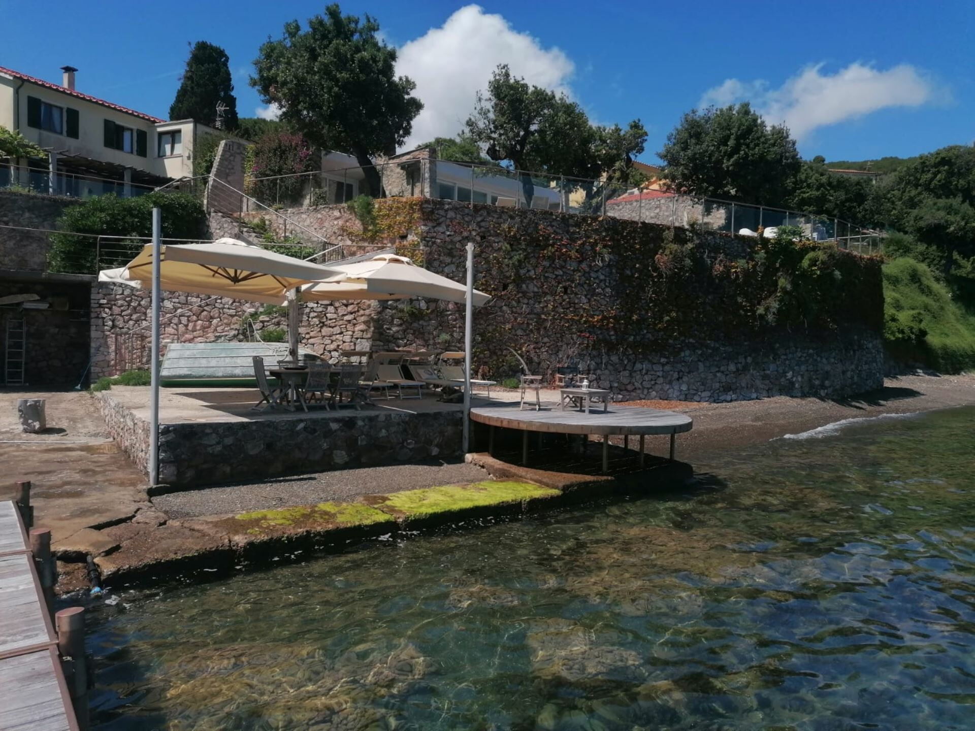 La caractéristique la plus remarquable de la propriété est sa vaste terrasse qui offre des vues à couper le souffle sur la mer, meublée d'une table à manger extérieure complète, de chaises confortables, de chaises longues et de parasols protecteurs. Cet espace extérieur exceptionnel constitue le cadre parfait pour les repas en plein air, les petits déjeuners tranquilles avec vue sur l'eau et les après-midis relaxants à profiter du soleil méditerranéen. À quelques pas de la villa, vous découvrirez une charmante petite plage avec une jetée pratique permettant d'amarrer de petites embarcations. Une plateforme ronde distinctive en bois s'étend directement au-dessus de l'eau, équipée de transats et parasols supplémentaires réservés exclusivement à votre usage. Cette caractéristique unique vous permet de profiter de la mer depuis un point de vue extraordinaire, créant une connexion intime avec l'environnement marin environnant. Les espaces extérieurs sont conçus avec soin pour maximiser votre plaisir du cadre côtier spectaculaire et faciliter une expérience de vacances immersive au bord de l'eau.