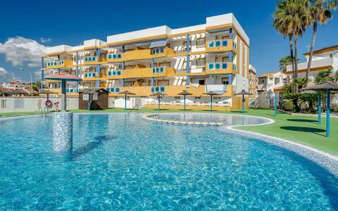 "San Fernando", apt 3 pièces 70 m2. Spacieux et clair, aménagement confortable et de style: séjour/salle à manger avec Télévision numérique et ventilateur. Sortie sur la terrasse. 1 chambre avec 1 grand-lit (150 cm, longueur 200 cm), air-conditionné et chauffage à air chaud. 1 chambre avec 2 lits (90 cm, longueur 190 cm), air-conditionné et chauffage à air chaud. Cuisine ouverte (four, 3 plaques à induction, grille-pain, bouilloire électrique, micro-ondes, congélateur, cafetière électrique, Capsules pour machine à café (Dolce Gusto) (NON INCLUSES)). Bain/bidet/WC. Meubles de terrasse. A disposition: lave-linge, fer à repasser, sèche-cheveux. Internet (Connexion WIFI, gratuit). Garage No 10. Veuillez noter: TV seulement ES. VT-53360-V // Reg. Nr.: ESFCTU000046044000503071000000000000000000VT-53360-V9