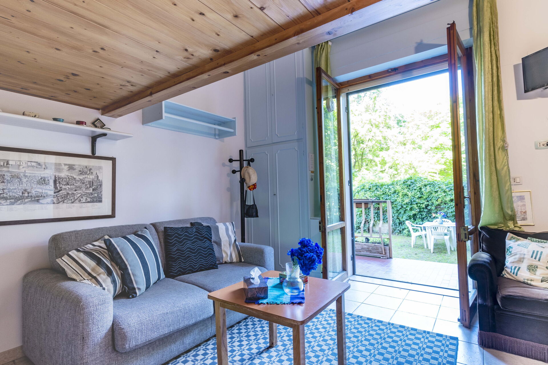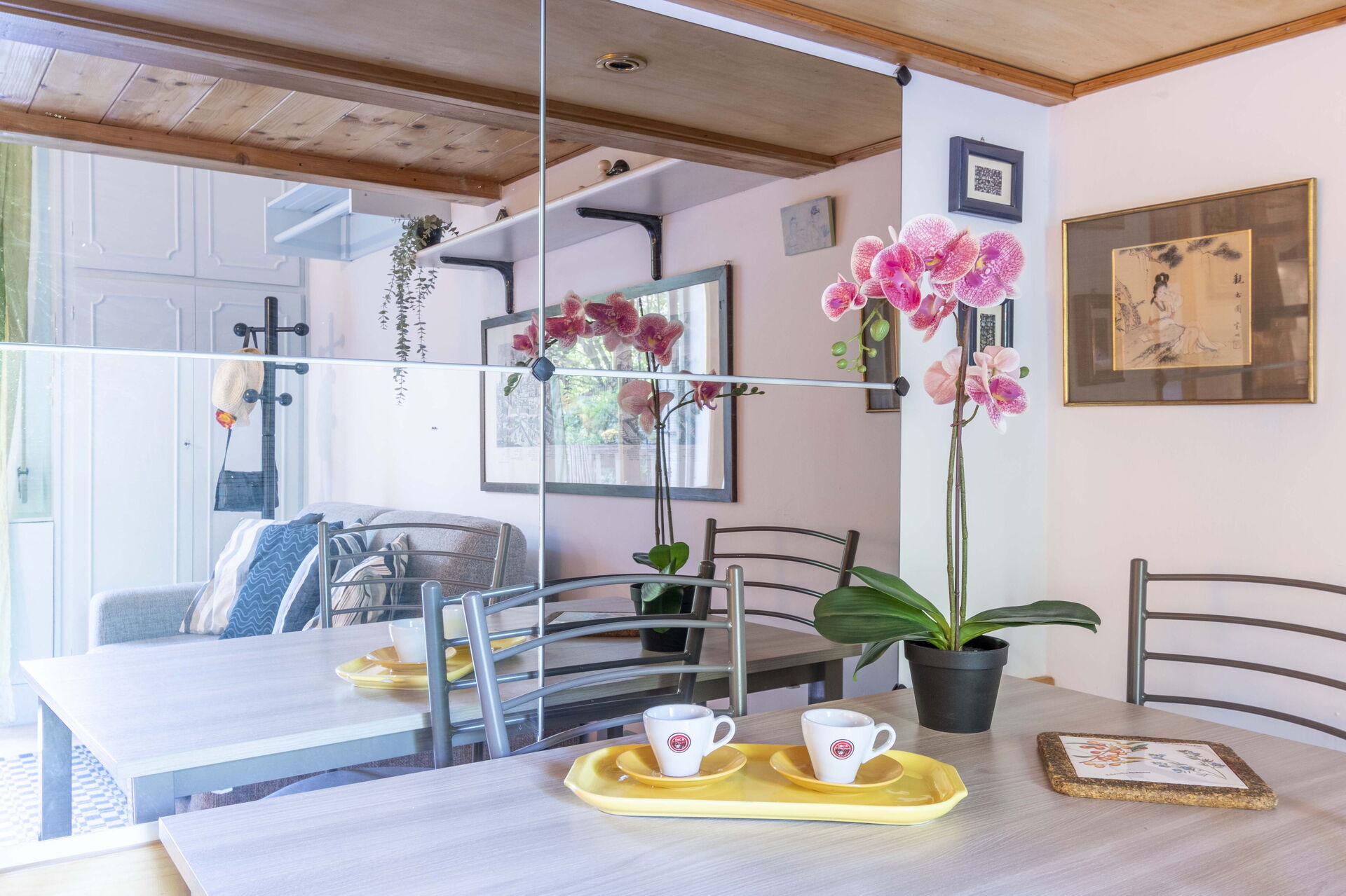 espace ouvert (35 m2): bureau, table à manger, canapé-lit, internet WIFI, tv satellitaire, réfrigérateur, cuisinière, lave-linge, congélateur, cuisine bien équipée, four micro-onde, machine à café italienne, sortie sur le jardin.