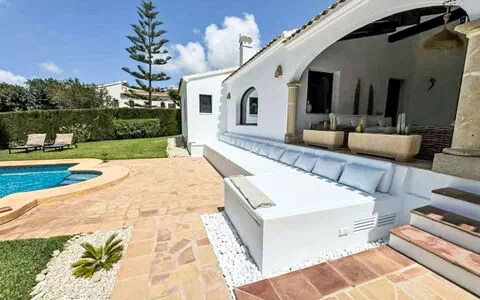 Belle, grande villa luxueuse "Alborada", rénovée, environnée par les arbres. Dans la localité, à 5.4 km du centre de Javea - El Arenal, situation tranquille, ensoleillée, à 5.4 km de la mer, à 5.4 km de la plage, dans une impasse. A usage privé: grand, beau jardin sur plusieurs niveaux entretenu 2'700 m2 avec pelouse, jardin naturel, champ, verger, piscine rectangulaire (10 x 5 m, profondeur 40 - 210 cm, disponibilité saisonnière: 01.Jan. - 31.Dec.) avec marches intérieures. Douche extérieure, jardinet, pergola, meubles de jardin, barbecue, place de parking près de la maison. Supermarché 2 km, restaurant 1.9 km, café 2 km, arrêt de bus 4.5 km, plage de sable "El Arenal" 5.4 km, plage de galets "La Granadella" 6.5 km, plage de rochers "Cala Blanca" 6.2 km. Port plaisance 5.6 km, marina 5.6 km, terrain de golf (18 trous) 1.4 km, ecole de surf 5.6 km, ecole de voile 5.6 km, tennis 5.5 km. Attractions à proximité: Club de Golf Javea (18 Holes) 1.4 km. Le propriétaire n'accepte pas les groupes de jeunes.