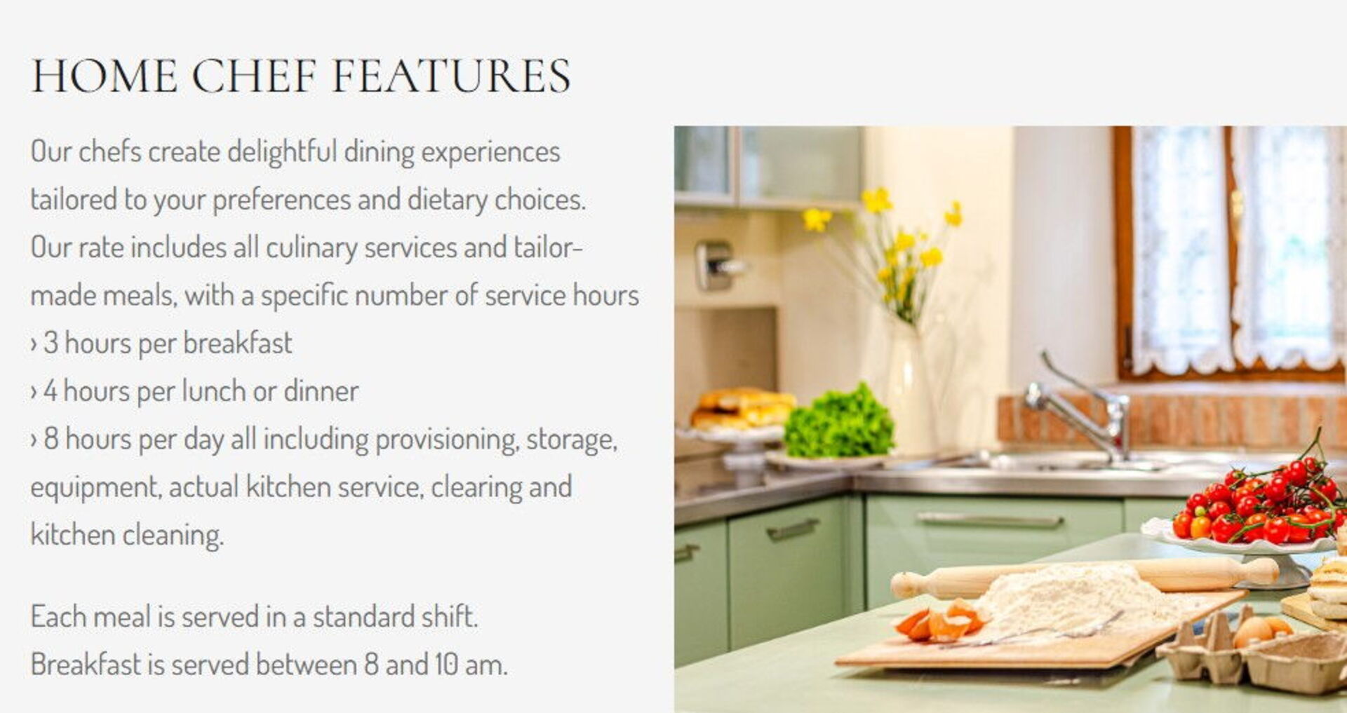 Cuisinier professionnel - Cherchez-vous un vrai bonheur pendant vos vacances? Pourquoi ne pas réserver un chef professionnel pour préparer et vous servir un repas délicieux avec les produits locaux? Le cuisinier va programmer le repas en fonction de vos préférences et exigences alimentaires. Le chef vous proposera suggestions pour les différents plats et le vin. Renseignez-vous pour plus de détails et les coûts supplémentaires.