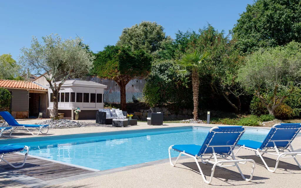 Belle, grande villa "Le Grand Large". Location composée d'un bâtiment principal et d'une annexe, dans le quartier de La Fontaine aux Bretons, situation tranquille, ensoleillée, à 900 m de la mer, à 900 m de la plage, dans une impasse, orientée sud. A usage privé: terrain 3'500 m2 (clôturé), jardin entretenu avec pelouse et arbres, piscine chauffée (6 x 11 m, profondeur 120 - 180 cm, disponibilité saisonnière: 15.Jun. - 15.Sep.) avec protection par couverture de volet. Meubles de jardin, barbecue, place de parking sur le terrain. Magasins 2 km, magasin d'alimentation 2 km, supermarché 2 km, restaurant 2 km, boulangerie 2 km, centre à 40 minutes à pieds, arrêt de bus "La Fontaine aux Bretons" 300 m, gare ferroviaire "Pornic" 3 km, plage de sable "La Fontaine aux Bretons" 900 m (petit[e]), centre thermal "Alliance Pornic Thalasso & Spa" 2 km. Port plaisance 3 km, terrain de golf (18 trous) 7 km, golf miniature 7 km. Attractions à proximité: Pornic Aventure Accrobranche 5 km, Legendia Parc 20 km, Planète Sauvage 28 km, La Baule 46 km, Nantes 48 km, Ile de Noirmoutier 55 km. Les lacs connus sont facilement accessibles: Lac de Saint Viaud 21 km. Région de randonnées: Sentier des Douaniers 900 m.
