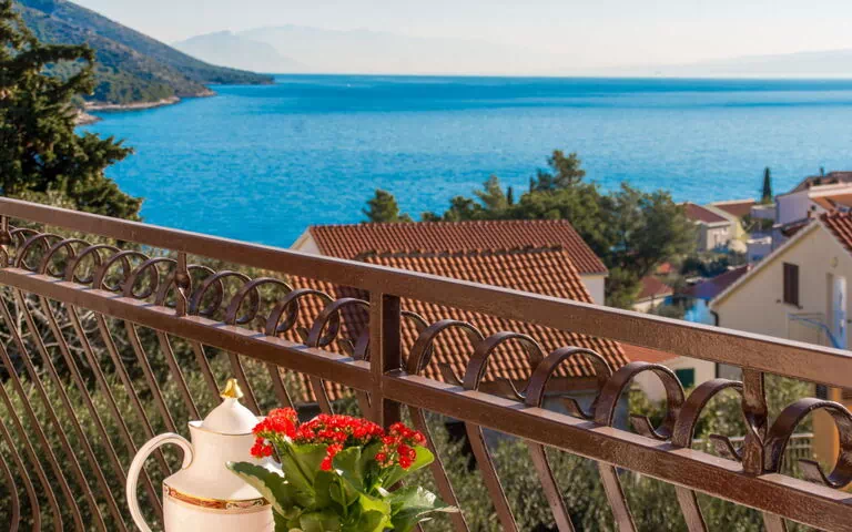 Apt 3 pièces 80 m2 au 1er étage. Séjour/salle à manger avec TV (satellite) et air-conditionné. Sortie sur le balcon. 1 chambre avec 1 lit double (2 x 80 cm, longueur 200 cm). 1 chambre avec 1 lit double (2 x 80 cm, longueur 200 cm), TV (satellite). Sortie sur le balcon. Cuisine ouverte (four, lave-vaisselle, 4 plaques à induction, grille-pain, bouilloire électrique, micro-ondes, congélateur, cafetière électrique, ilot de cuisine). Sortie sur le balcon. Douche/WC. Chauffage par le sol. Balcon 19 m2. Mobilier de balcon. Belle vue sur la mer. A disposition: moustiquaire, sèche-cheveux. Internet (Connexion WIFI, gratuit). Veuillez noter: détecteur de fumée.