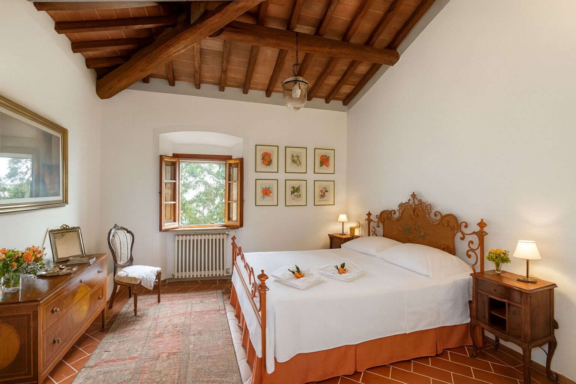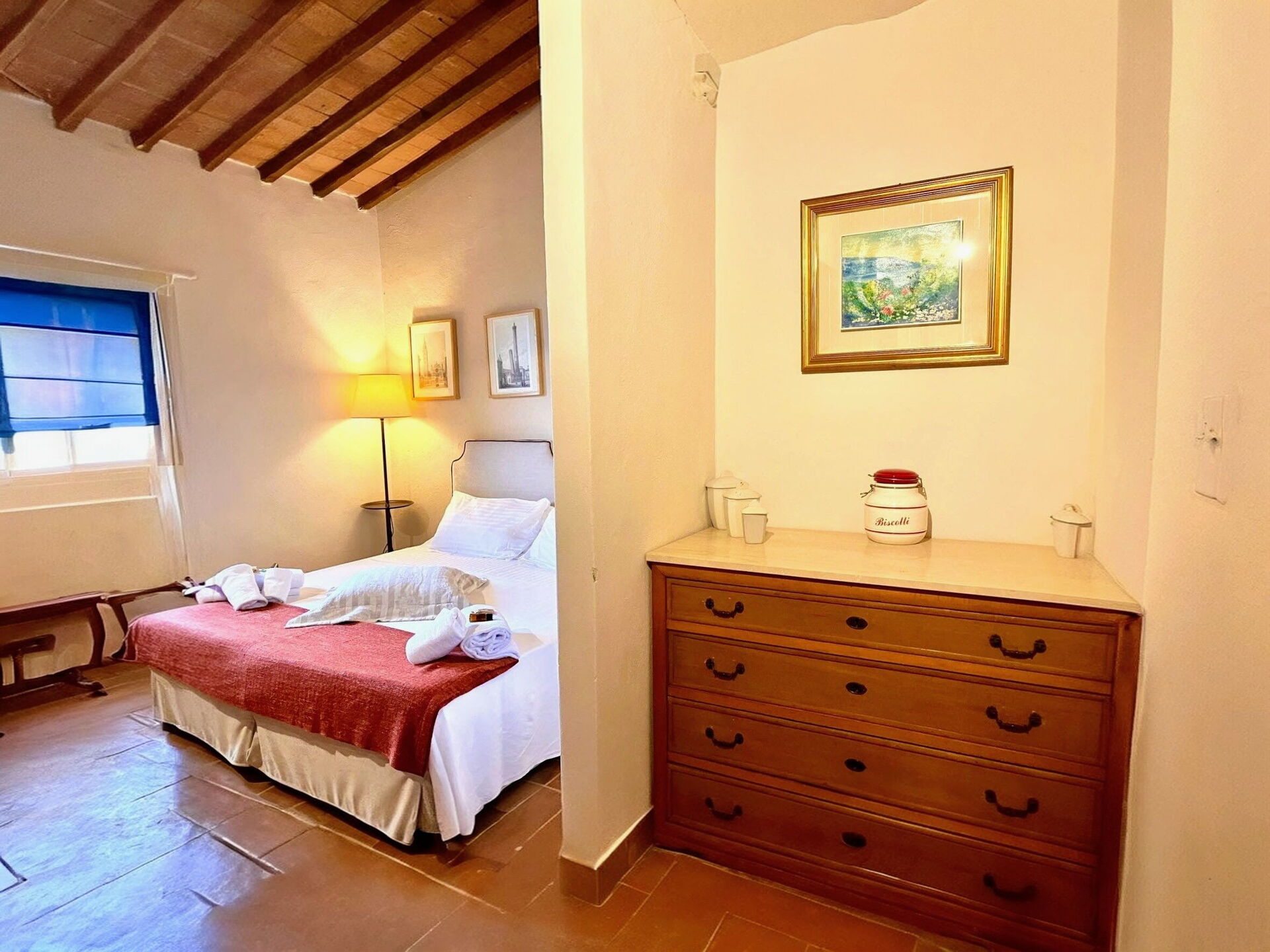 Vous serez accueilli dans une villa toscane magnifiquement restaurée de 300 mètres carrés répartis sur trois étages distincts, conçue pour accueillir confortablement jusqu'à 10 personnes dans 5 chambres climatisées, chacune dotée de sa propre salle de bain privative attenante. Le rez-de-chaussée vous accueille avec un hall d'entrée menant à une chambre double climatisée avec salle de bain attenante équipée d'une douche, une salle à manger formelle et une cuisine entièrement équipée qui s'ouvre directement sur le jardin, tandis qu'un WC extérieur avec douche est idéalement situé sous la loggia. L'étage principal abrite un salon spacieux orné d'une cheminée décorative, d'une télévision et d'un canapé modulaire contemporain, aux côtés d'une chambre double king-size climatisée mesurant 203x193 centimètres avec salle de bain attenante équipée d'une douche, une chambre double climatisée avec lits séparables et salle de bain attenante offrant à la fois une baignoire et une douche séparée, et une chambre twin climatisée avec lits jumelables et salle de bain attenante avec douche légèrement plus petite que les autres chambres, ainsi qu'un accès à une loggia couverte offrant des vues panoramiques. Le dernier étage dispose d'une chambre double climatisée avec lits séparables et salle de bain attenante avec douche, offrant les vues panoramiques les plus impressionnantes de la villa. Les 6 salles de bain sont toutes attenantes, et des moustiquaires sont installées dans toutes les chambres pour assurer votre confort pendant les soirées chaudes.