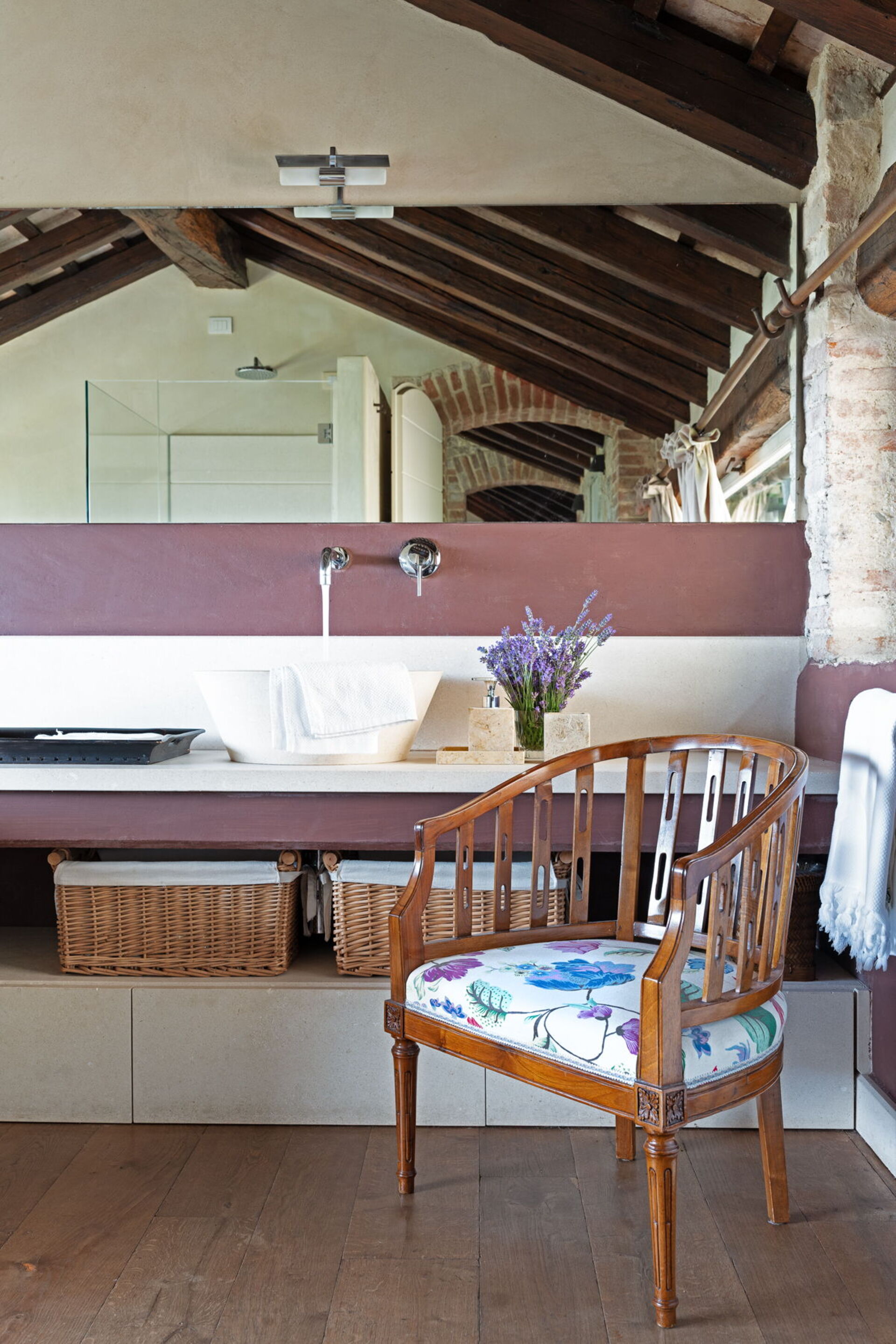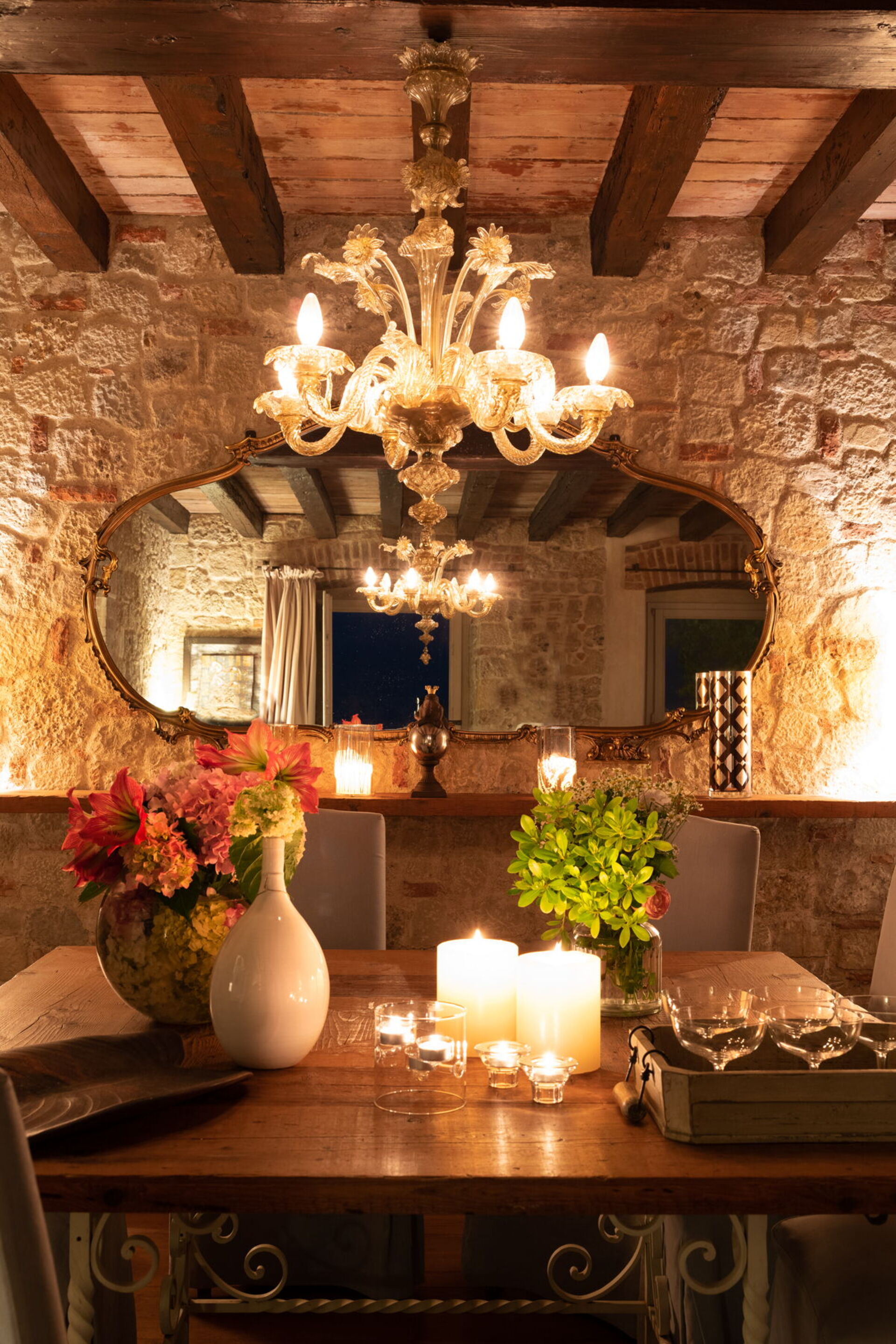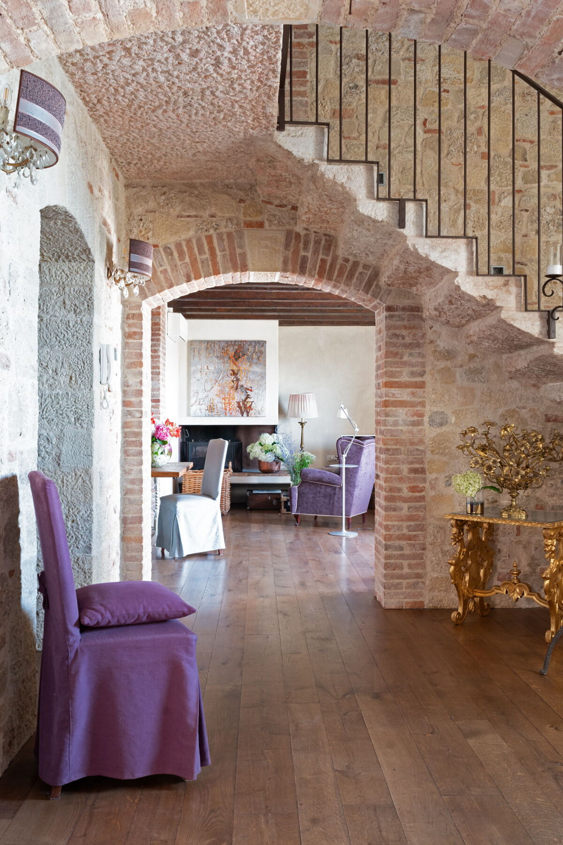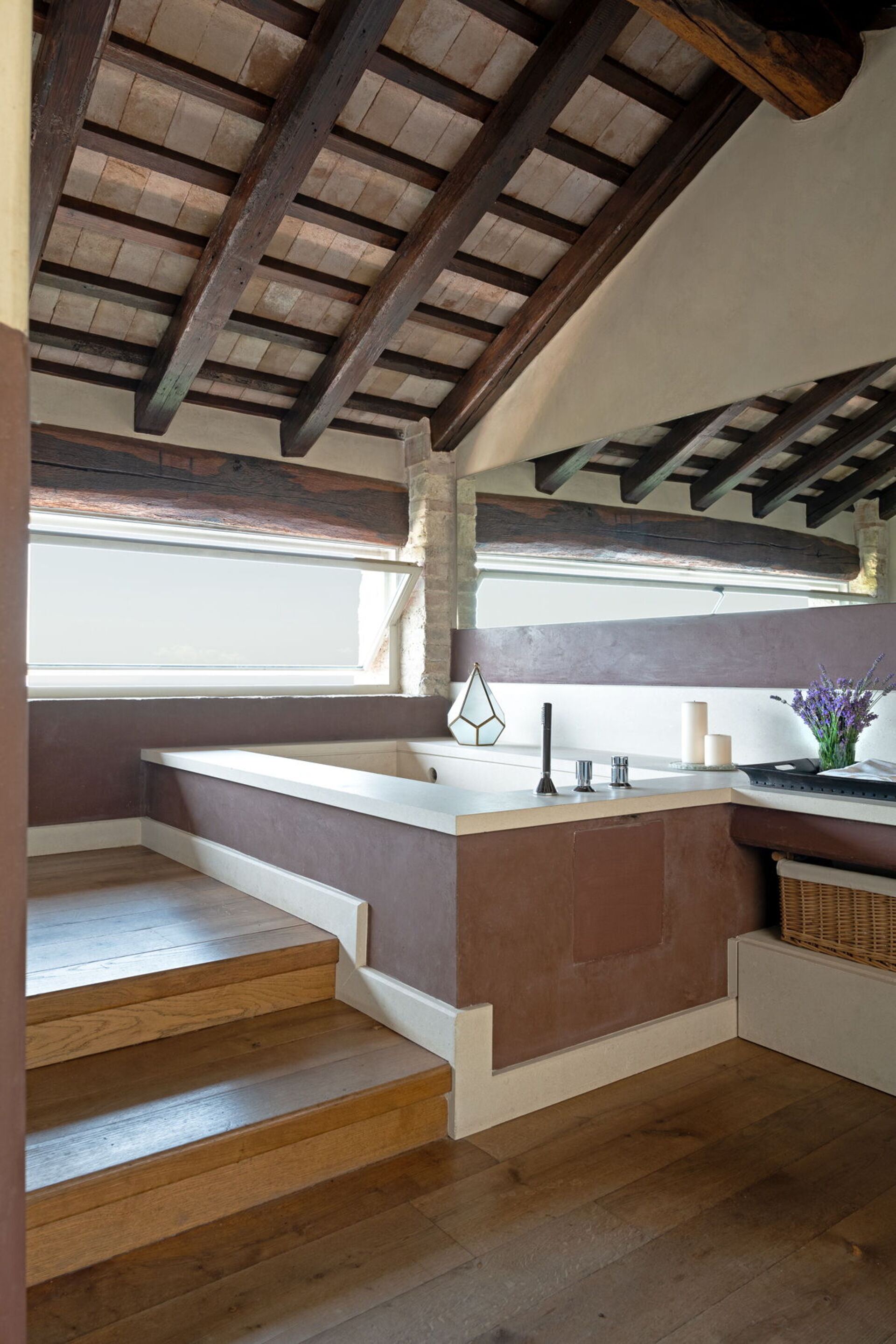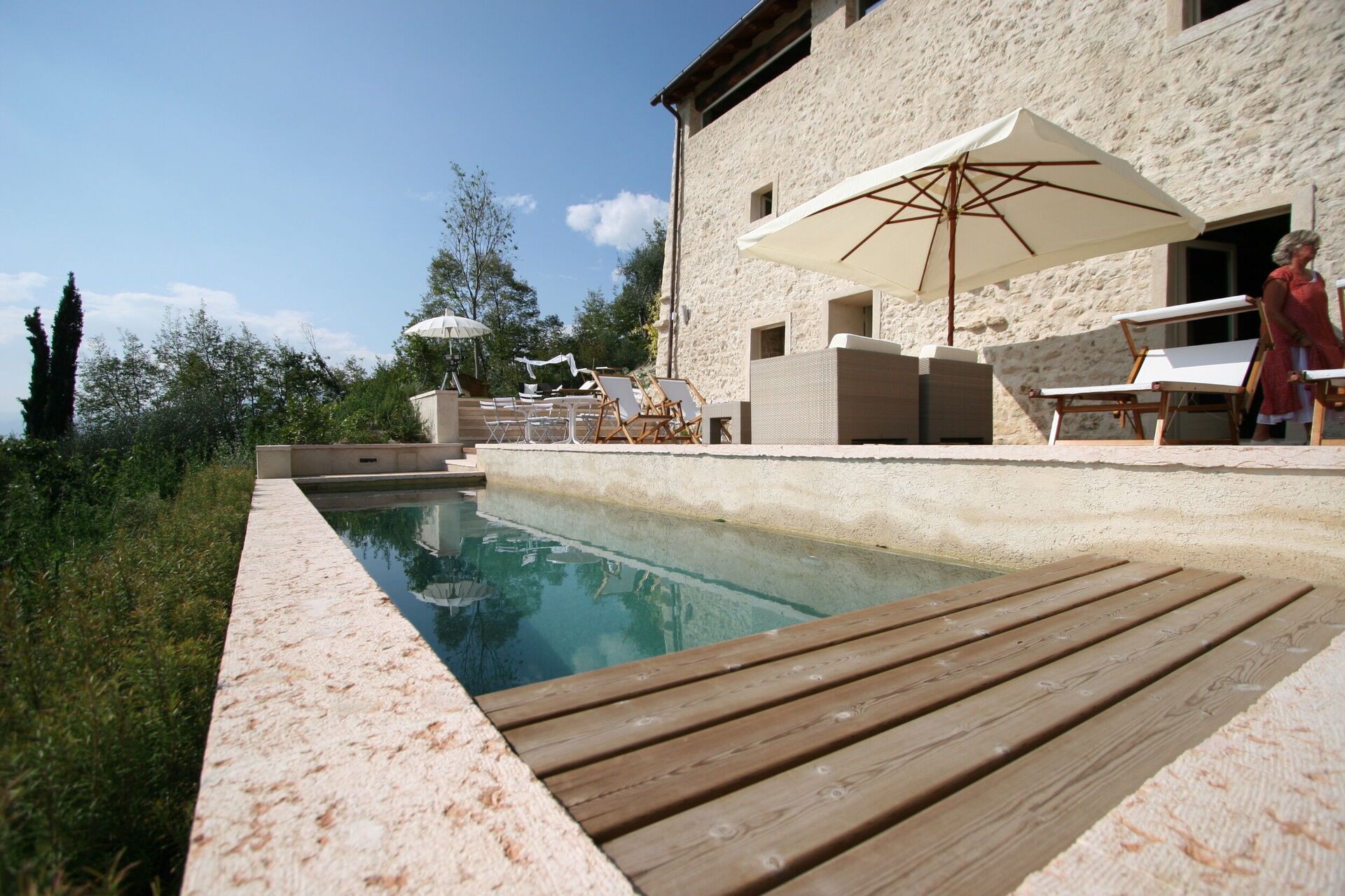 Les espaces extérieurs de cette propriété sont vraiment remarquables, tirant pleinement parti du cadre spectaculaire au sommet de la colline. Vous trouverez une piscine privée où vous pourrez vous détendre tout en admirant les vues à couper le souffle. La terrasse panoramique est équipée de mobilier d'extérieur confortable, offrant un espace idéal pour les repas en plein air et les réceptions tout en profitant des vues imprenables sur le paysage. Le vaste terrain de 5 hectares offre un espace généreux pour des promenades tranquilles et une intimité totale, vous permettant de vous immerger pleinement dans l'environnement paisible de la campagne d'Asolo.