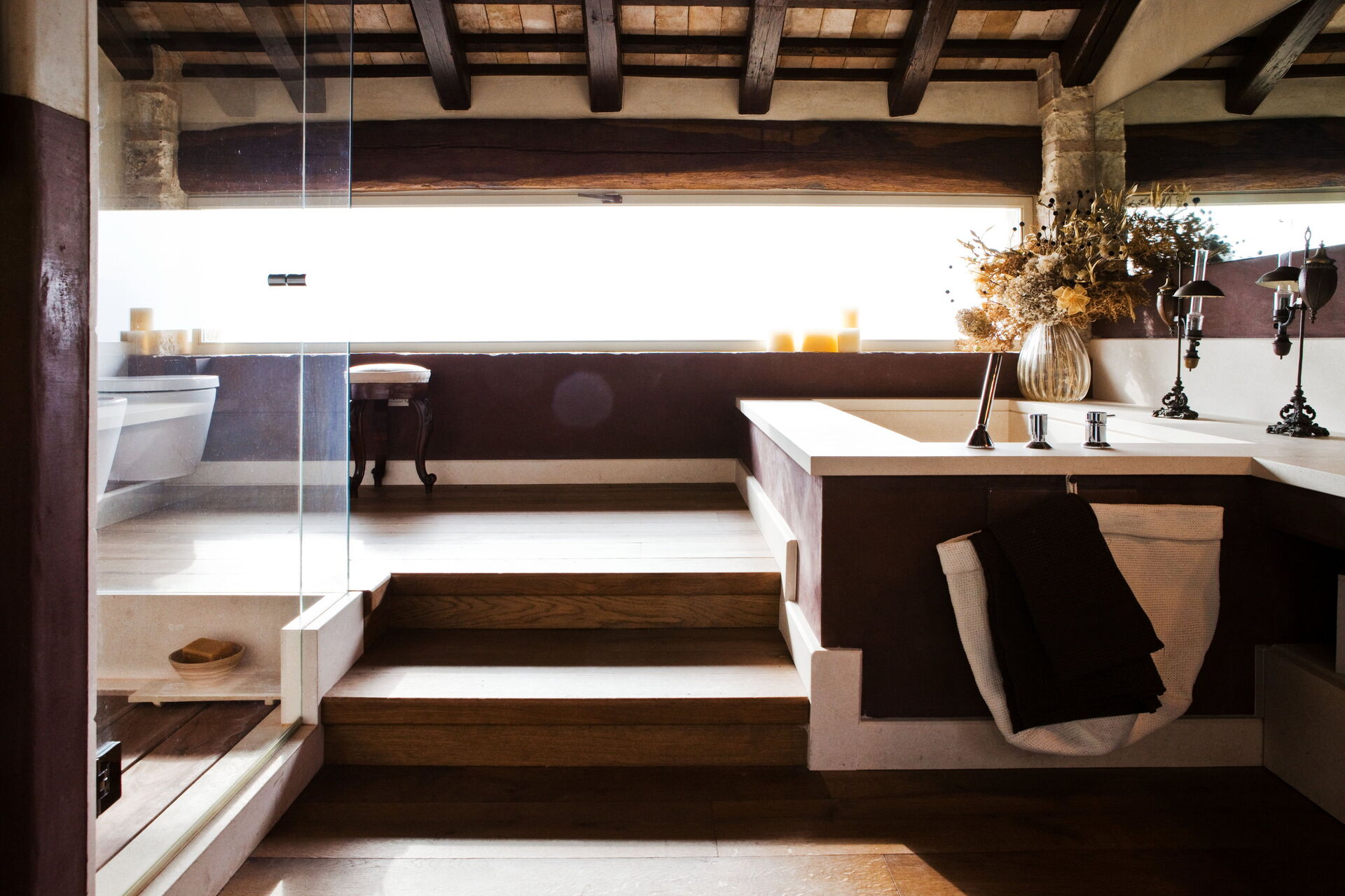 Cette villa offre un hébergement pour 6 personnes réparties dans 3 chambres et 3 salles de bains, s'étendant sur 300 mètres carrés et se développant sur trois niveaux. Vous entrez par la porte d'entrée dans un grand salon et une salle à manger décloisonnés au rez-de-chaussée. Le vaste salon dispose de sièges moelleux et se prolonge dans la salle à manger, qui comprend une table carrée pouvant accueillir confortablement jusqu'à 8 personnes. Adjacent à l'espace repas, vous trouverez la cuisine moderne et spacieuse, qui comprend également une charmante table ancienne. Une salle de bains pour les invités est commodément située juste à côté de la cuisine, et des portes-fenêtres s'ouvrent du salon sur la terrasse panoramique et l'espace piscine. Un escalier comprenant 16 marches monte au deuxième étage, où se situent 2 chambres. La première chambre dispose d'un lit double mesurant 180x200 et d'une salle de bains attenante équipée d'une douche. La deuxième chambre offre également un lit double des mêmes dimensions, mesurant 180x200, et dispose d'une salle de bains privative avec douche. Les deux chambres bénéficient de fenêtres orientées sud donnant sur le jardin. De plus, à cet étage, il y a une buanderie. La chambre principale occupe le troisième étage, accessible par 15 marches, et offre un accès direct à une terrasse privée et au jardin supérieur arrière. Sa luxueuse salle de bains dispose d'une grande baignoire en pierre de Vicence mesurant 1,58 x 76, ainsi que d'une douche séparée. La troisième salle de bains n'est pas privative. Les chambres disposent de lits avec 2 matelas, vous permettant de demander du linge simple si vous le souhaitez.