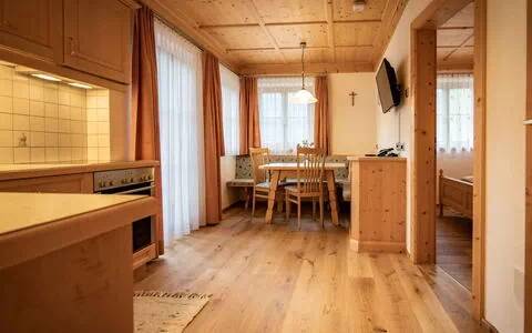 Our comfortably furnished holiday flat is located on the 2nd floor of our farmhouse and is lovingly furnished with lots of wood from local spruce in the Villgrater architectural style.