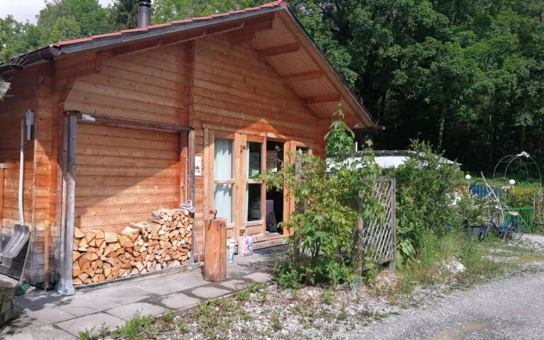 Le chalet a eté construit en 2011. Il est placé dans la partie résidentielle du camping.