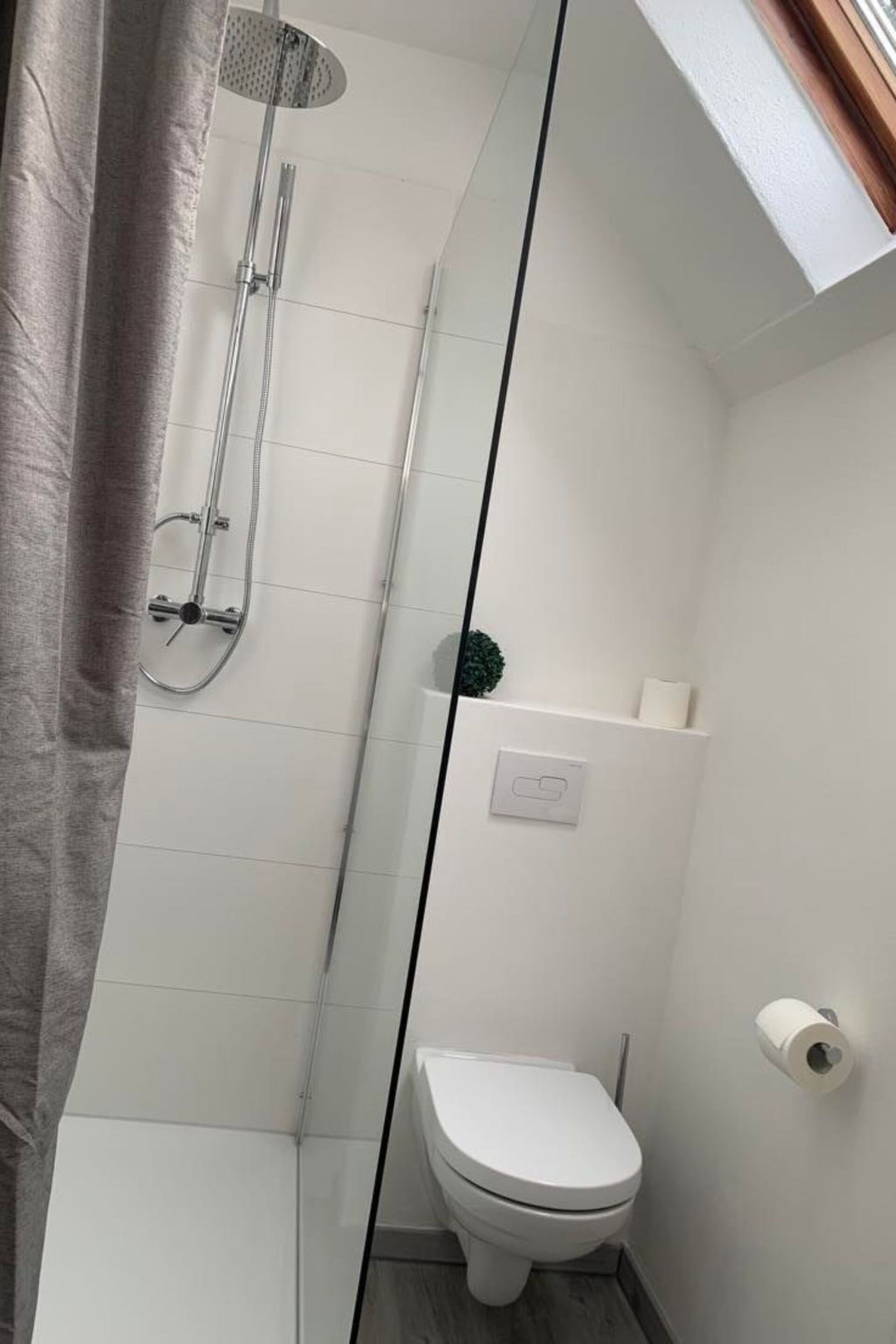 The fully heated accommodation provides around 75m² of living space, comprising a ground floor, a mezzanine and an upper floor. It has a cosy living room with a fireplace, a fully-equipped kitchen, a dining space, two bedrooms and a bathroom. The first bedroom is furnished with two single beds (90cm wide). A supplementary bed (90 x 200cm) can be provided free of charge. This bedroom also has an ensuite WC with a washbasin and hairdryer. The second bedroom has a double bed (180cm wide), while the third has a queensize bed (140cm wide). The shared bathroom has a shower, washbasin, hairdryer and toilet. You can wash laundry at the village for a small fee.
