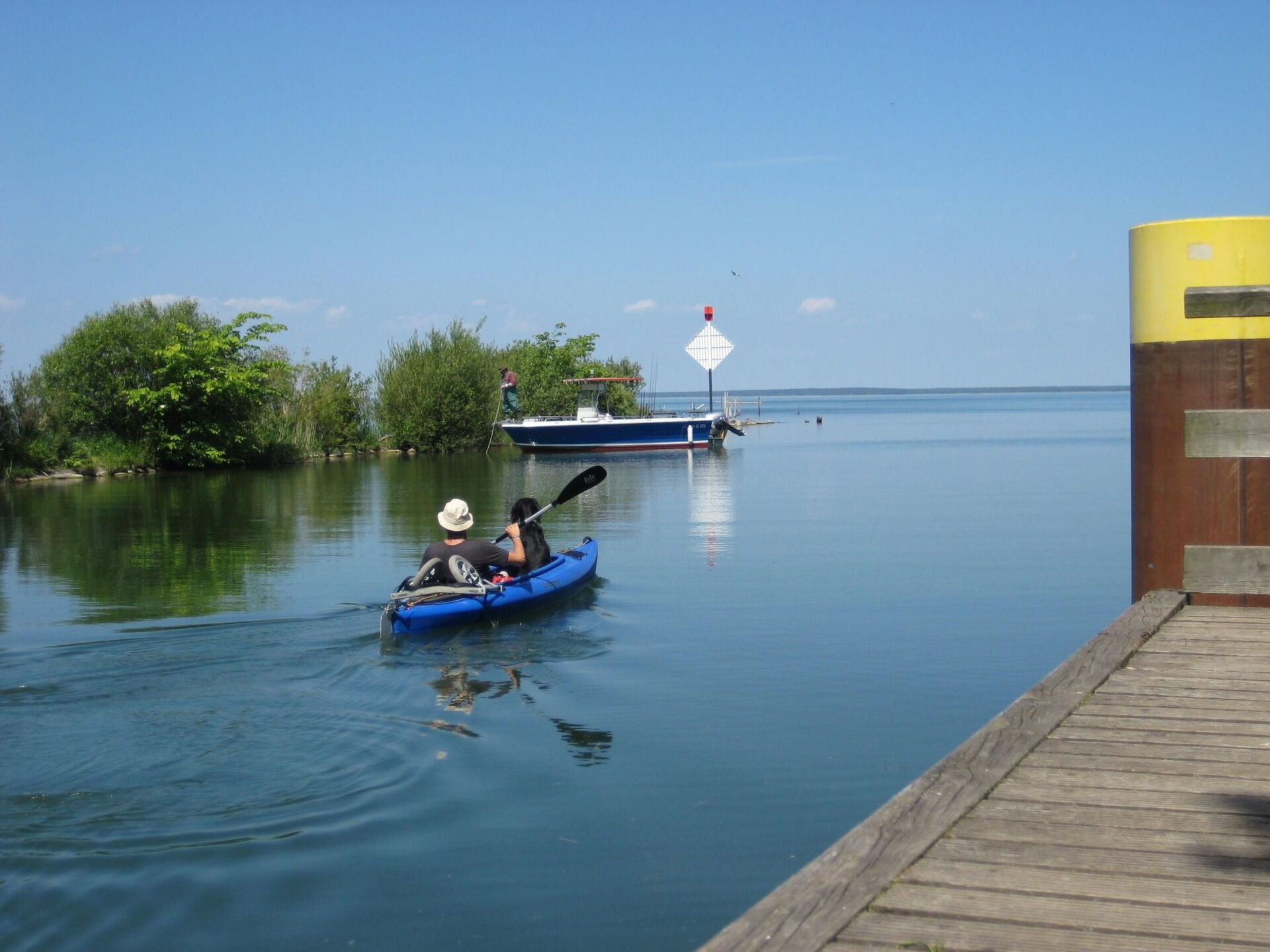 The grassy beach and the sea are just 100 metres away. The lido at the holiday park with its sandy beach is approx. 300 metres away. While cafés and restaurants are just 200 metres away on foot, shopping facilities and supermarkets are just two kilometres away in the town centre. Excursions into the natural surroundings, such as the Müritz National Park, are well worthwhile.