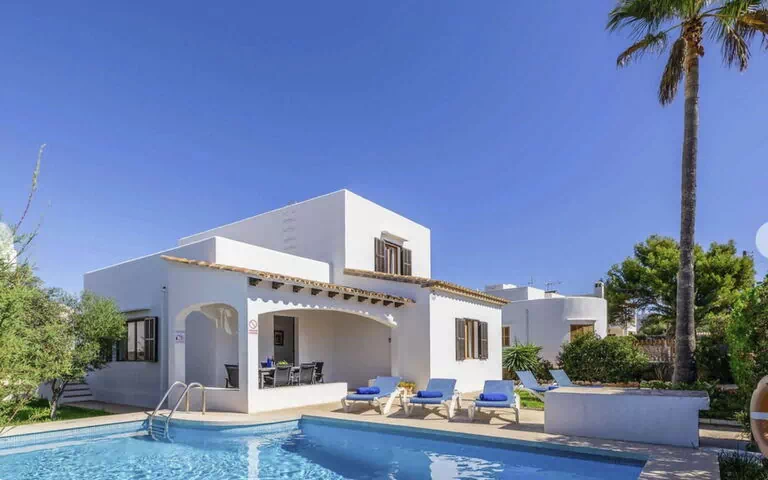 Holiday home for 6 people with pool in a good location near the marina and the centre of Cala D'Or, Mallorca. The beach of Cala Dor is 650 metres away. The pedestrian area in the town centre offers shops, bars, a good selection of restaurants and pubs with live music. The marina with great restaurants and cafés overlooking the yacht harbour is just a few minutes' walk away.