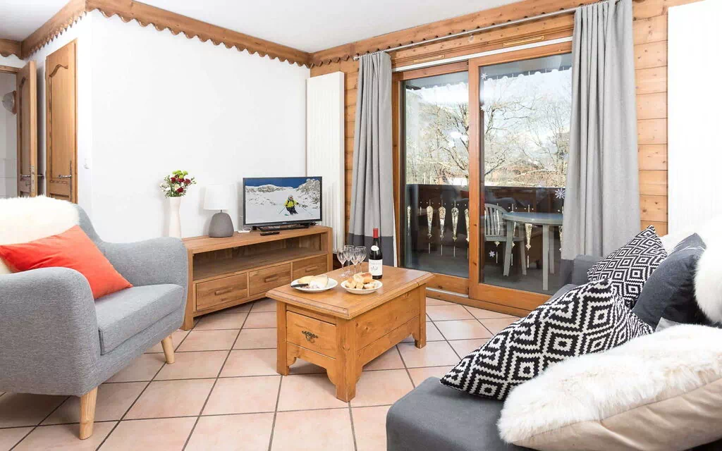 Ginabelle 14 apartment is a central, 2 bedroom apartment which benefits from luxury holiday rentals amenities of swimming pool, sauna, hammam and gym access within the residence. The apartment has one master super-king bedroom with ensuite bathroom, as well as a second bedroom which can be made as a twin room or super-king. In addition there is a family bathroom with bath and overhead shower, as well as a second separate WC. In the living area are a comfy sofa, TV and games, as well as doors which open out onto a spacious balcony with sweeping views of Les Planards ski area and up the valley towards Le Tour. The adjoining dining area in Ginabelle 14 apartment has seating for 6 with three dining chairs and a bench along one side, while the kitchenette is equipped with more luxury holiday rental essentials, including dishwasher and Nespresso coffee machine. The apartment also benefits from underground parking, private ski locker and wifi internet access.