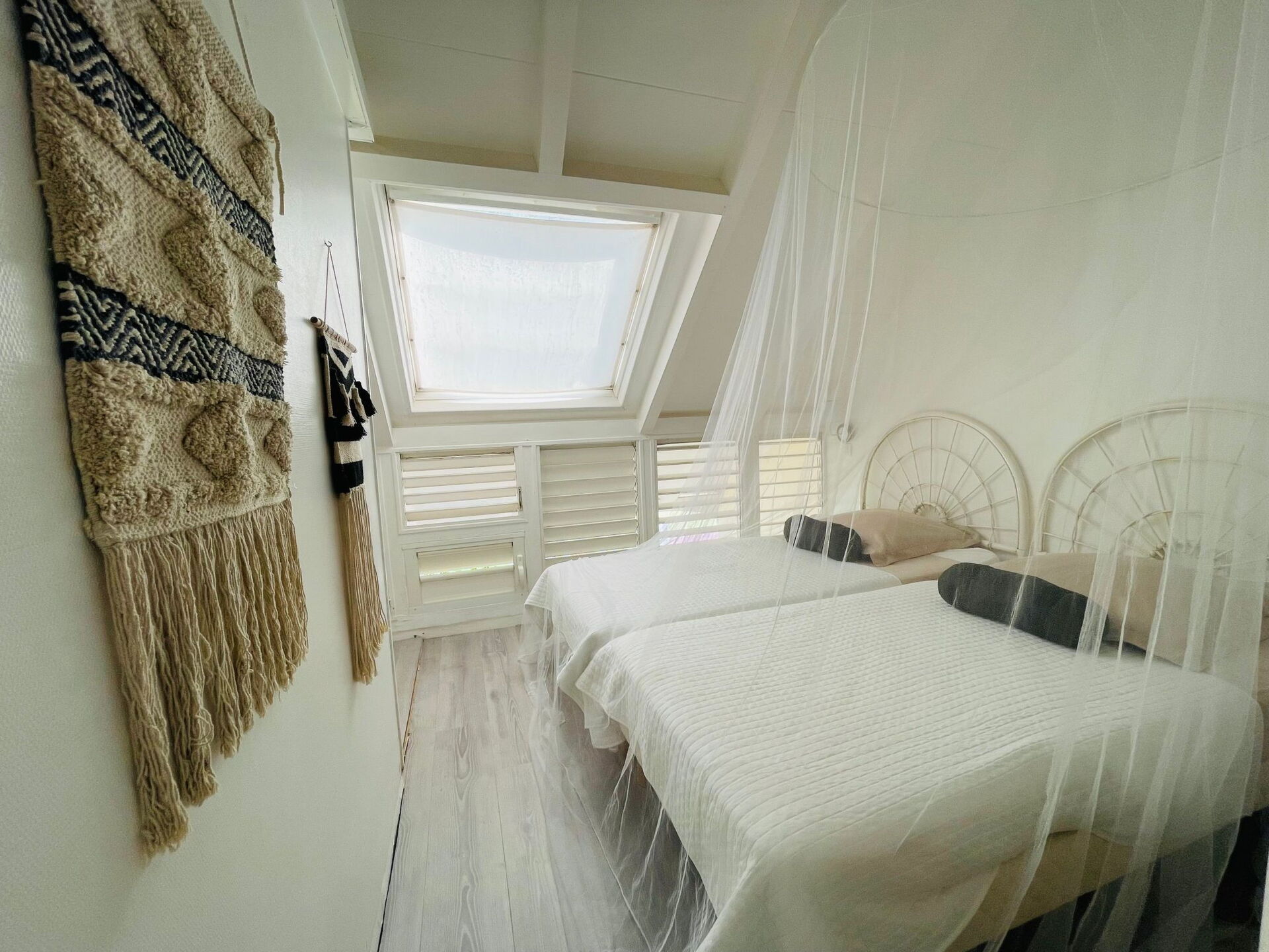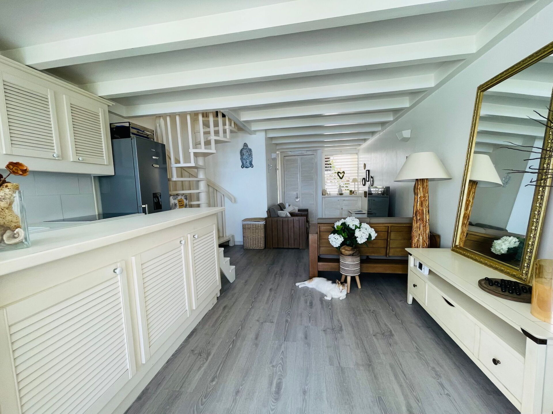 L'intérieur de cette maison de vacances répond à vos besoins avec fonctionnalité et confort, mettant à disposition deux chambres climatisées pour garantir des nuits reposantes malgré la chaleur tropicale. Les 2 salles d'eau offrent une privacité et une commodité appréciables pour tous les invités. La maison est également équipée d'un ensemble d'électroménagers modernes, y compris une cuisinière à trois plaques, plaque à induction, une cafetière à filtre et à dosettes, un lave-vaisselle et une bouilloire électrique, ajoutant une touche de simplicité à la préparation des repas. Pour le confort supplémentaire, on trouve un ventilateur et un lave-linge à usage privatif, soulignant l'attention portée aux petits détails qui rendent le séjour agréable.