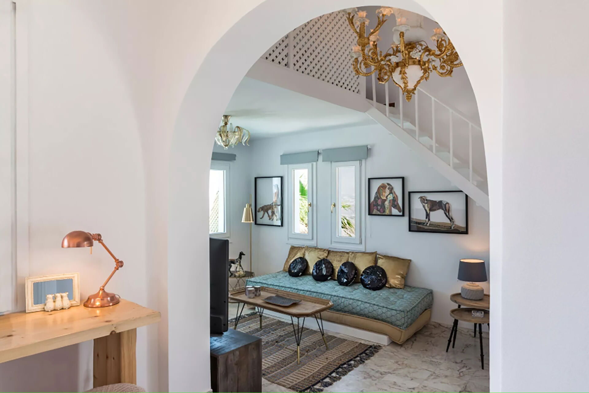 Villa Sean est une villa de vacances d'exception nichée à Akrotíri, dans la partie sud-ouest de Santorin, en Grèce. Positionnée sur un terrain en hauteur, la villa offre des vues panoramiques dégagées sur la mer, la caldeira et le volcan. La propriété bénéficie d'un cadre calme et privé, à proximité des destinations les plus célèbres de l'île.