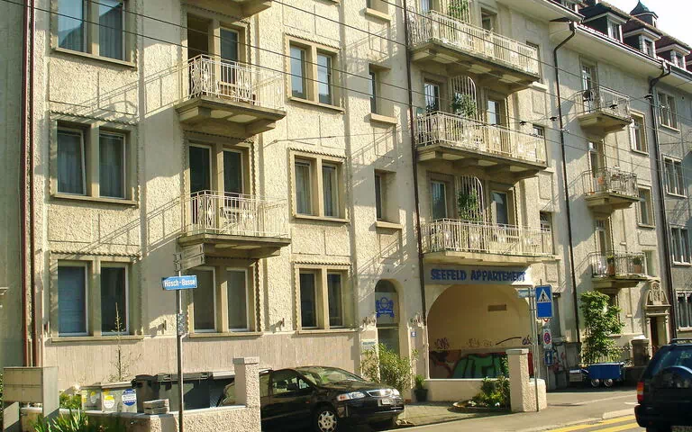 Petite résidence "Seefeld". Situation centrale, à 400 m du lac, dans une rue. Infrastructures de la Maison: réception, ascenseur, lave-linge, sèche-linge (en commun, en sus). Nettoyage possible (en sus). Parking public possible dans la rue. Magasin d'alimentation, supermarché 50 m, restaurant 80 m, bar 50 m, arrêt du bus 20 m, gare ferroviaire "Zürich-Stadelhofen" 2 km, piscine 1.5 km. Veuillez noter: La photo ne montre qu’un exemple de location de vacances. D’autres appartements sont également proposés à la location dans cette maison de vacances.
