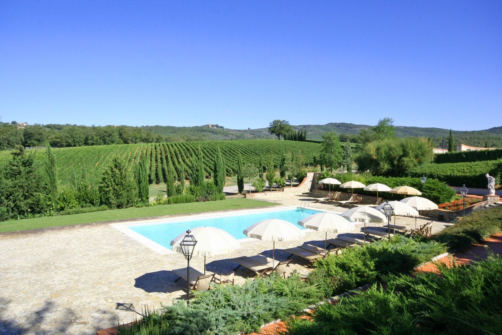 Au cœur des collines verdoyantes et des vallées couvertes d’arbres, bordées par les routes sinueuses de la célèbre région viticole du Chianti en Toscane, vous pourriez découvrir l’irrésistible charme de la Villa La Canonica Di Pietrafitta, une propriété unique et pleine de caractère qui surplombe le ravissant petit hameau de Pietrafitta, à 5 km de la ville de Castellina in Chianti.