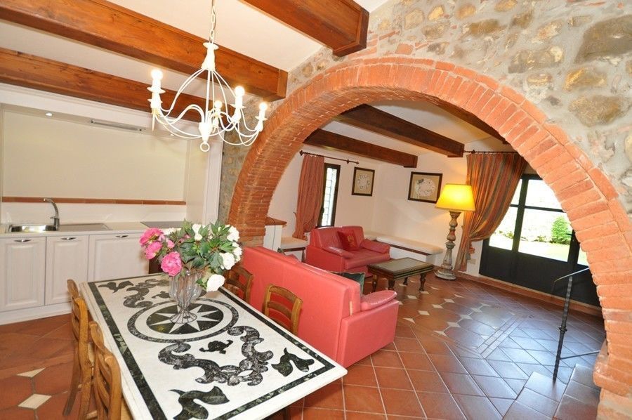 Cette ravissante bâtisse en pierre regorge de charme et de caractère. Ancienne résidence d’un prêtre, la Villa La Canonica Di Pietrafitta est composée d’une ancienne église avec un clocher et de plusieurs petits bâtiments en pierre reliés pour former une propriété impressionnante autour d’une cour pavée. L’ensemble évoque un petit hameau à part entière et donne aux invités l’impression d’avoir pris possession d’un véritable village toscan pendant leur séjour en vacances en Toscane!