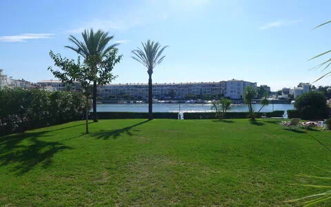 Belle, grande résidence accueillante "Sant Maurici". Dans le quartier de Lago San Mauricio, à 2 km du centre d'Empuriabrava, situation tranquille, ensoleillée, à 2.5 km de la mer, juste au bord du lac, orientée sud-ouest. En commun: grand, beau jardin entretenu (clôturé) avec pelouse et plantes, piscine rectangulaire (10 x 15 m, profondeur 170 cm, disponibilité saisonnière: 15.Mai.-30.Sep.). Bassin pour les enfants. Magasin d'alimentation, supermarché, centre commercial 10 m, restaurant, bar 50 m, boulangerie 10 m, arrêt du bus 500 m, plage de sable "Empuriabrava" 2.5 km. Port plaisance 4 km, tennis 600 m, golf miniature 1 km, centre équestre 2 km. Attractions à proximité: Túnel del Viento Empuriabrava 950 m, Parque Acuático Aquabrava Roses 6 km, Casino y festival de Peralada 14 km, Museo Dalí Figueres 15 km, Ruïnes d'Empúries 21 km, Cadaqués 21 km.