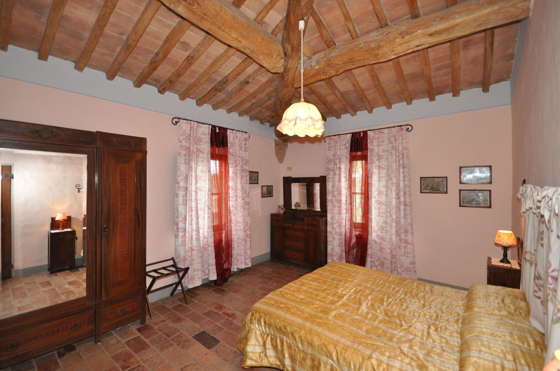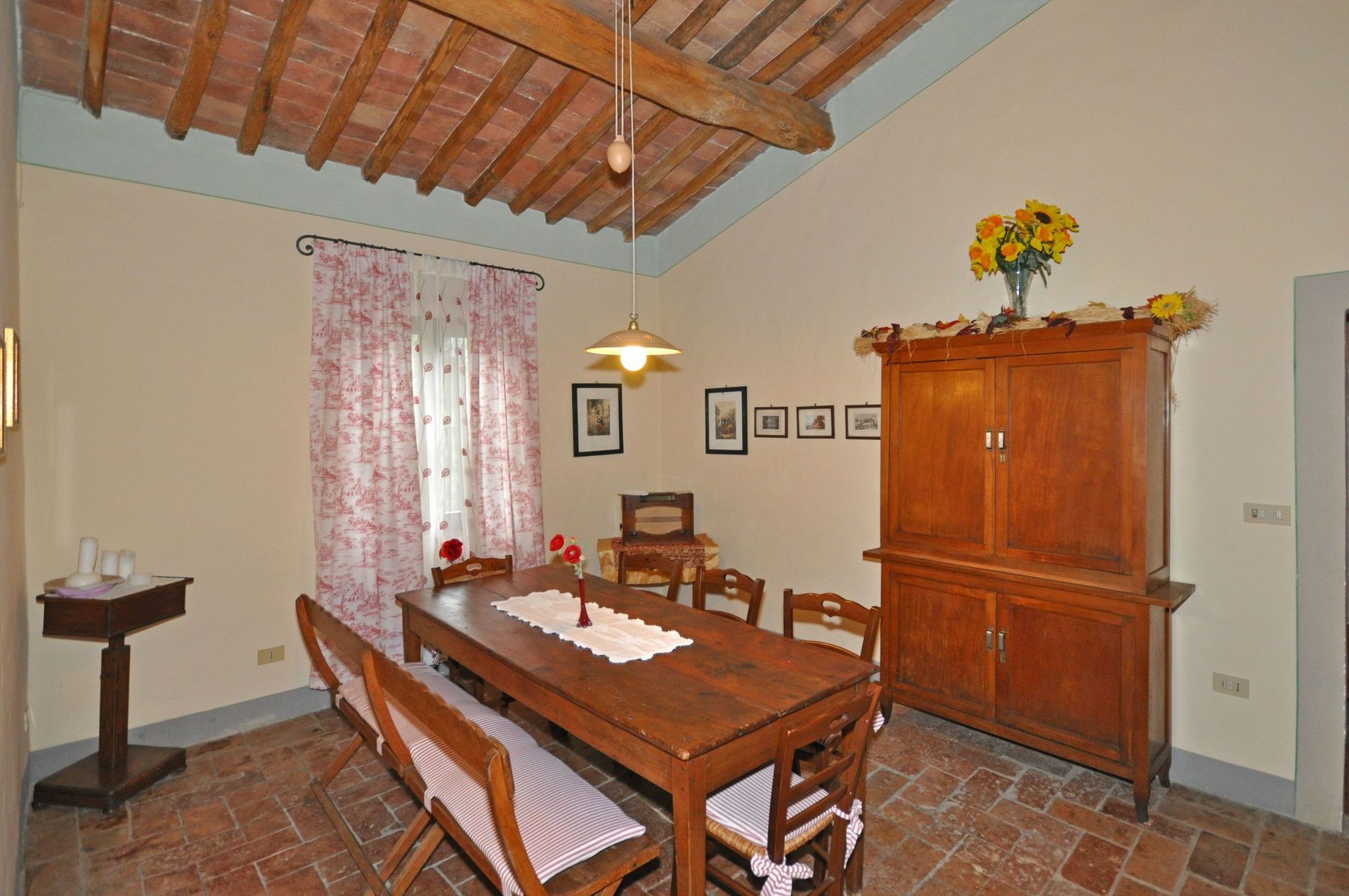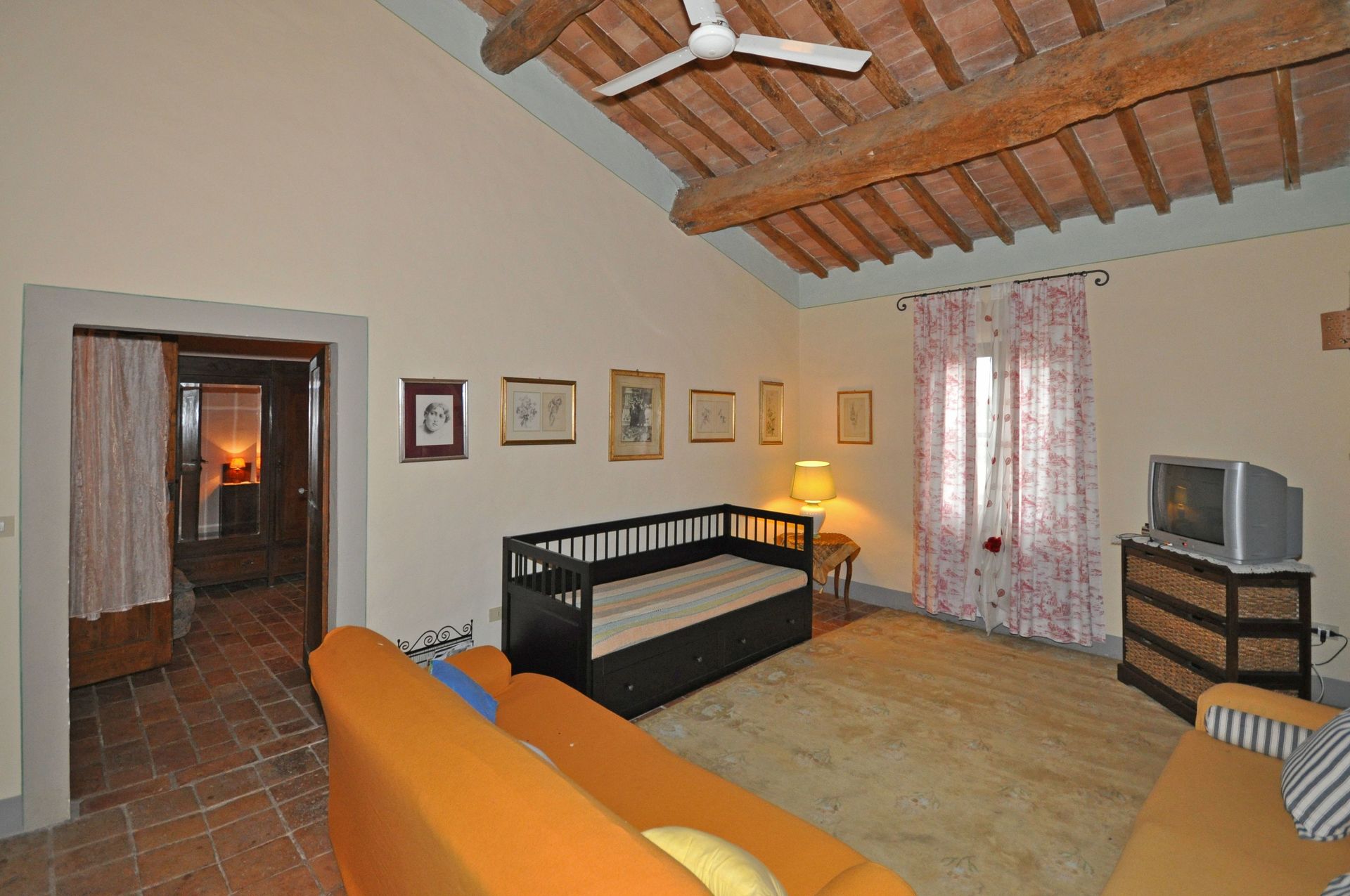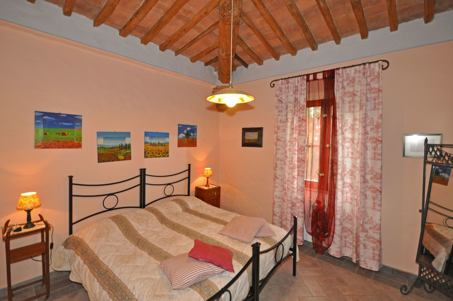 Grand salon - salle à manger avec grande cheminée typique toscane , grande cuisine, une chambre avec lit double, avec 1 divan-lit pour 2 enfants ou 1 adulte, 2 chambres avec 2 lits simples qui peuvent être joints sur demande; 2 salles de bains, une avec une grande douche et l'autre (12 m²) avec douche et baignoire, de grandes fenêtres.