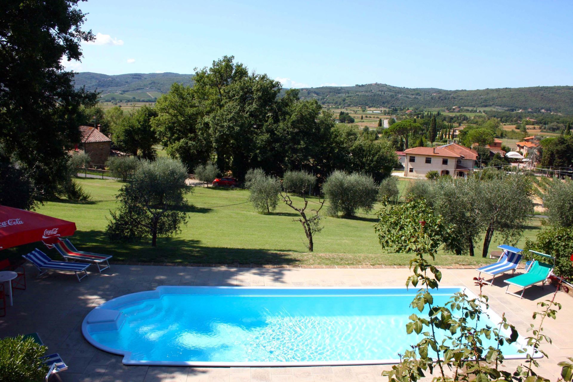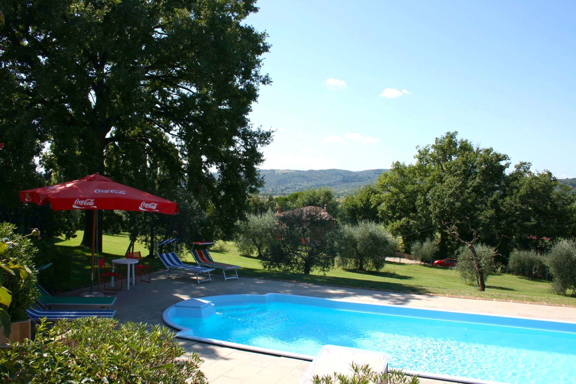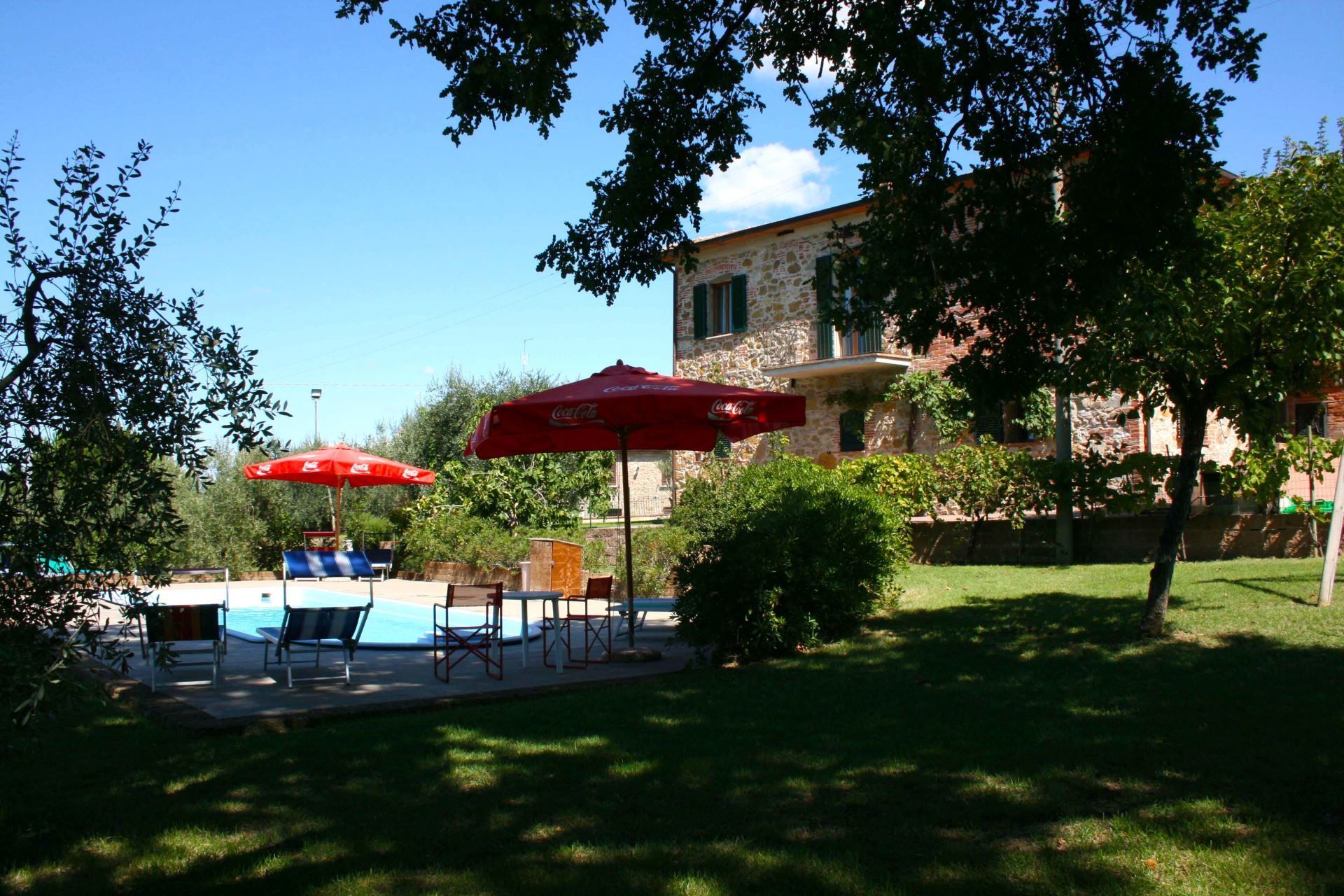 Un grand jardin bordé de cyprès et d'autres arbres, densément verts, des vues sur les collines et les paysages toscans luxuriants tout autour, une piscine privée, un toit en terre cuite, une jolie cuisine toscane traditionnelle, de charmantes chambres finies avec soin et hautes des plafonds avec poutres apparentes; un joli petit espace couvert pour manger en plein air, de nombreuses pièces avec des sorties directes sur la terrasse... tout cela et plus encore, c'est ce que vous pouvez attendre de la magnifique et merveilleusement toscane Villa La Fragola (signifiant la fraise) à seulement 500m du village de Chianacce, à 19 km de Montepulciano. Situé dans une partie du monde pittoresque et paisible, idéale pour ceux qui cherchent à s'évader et se détendre pendant leurs vacances, ce joyau vous permet de goûter à la vie charmante et au rythme lent de la campagne Toscane. Le tout, en étant idéalement situé à seulement 5km de l'autoroute, ce qui permet un accès facile à de nombreuses destinations et attractions célèbres de la région. Ceux qui choisissent la Villa La Fragola obtiendront donc le meilleur des deux mondes -l'évasion reposante dans la campagne toscane et de nombreuses opportunités de jouer au touriste et de cocher quelques cases sur votre liste de choses à voir. En plus de Montepulciano à seulement 19 km (12 miles), d'autres villes sont à proximité comme Cortona à 20 km (12 miles), Arezzo à 45 km (28 miles), Montalcino à 52 km (32 miles) et Pérouse à 62 km (39 miles).