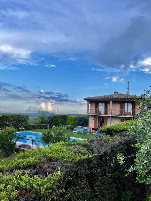 Un grand jardin bordé de cyprès et d'autres arbres, densément verts, des vues sur les collines et les paysages toscans luxuriants tout autour, une piscine privée, un toit en terre cuite, une jolie cuisine toscane traditionnelle, de charmantes chambres finies avec soin et hautes des plafonds avec poutres apparentes; un joli petit espace couvert pour manger en plein air, de nombreuses pièces avec des sorties directes sur la terrasse... tout cela et plus encore, c'est ce que vous pouvez attendre de la magnifique et merveilleusement toscane Villa La Fragola (signifiant la fraise) à seulement 500m du village de Chianacce, à 19 km de Montepulciano. Situé dans une partie du monde pittoresque et paisible, idéale pour ceux qui cherchent à s'évader et se détendre pendant leurs vacances, ce joyau vous permet de goûter à la vie charmante et au rythme lent de la campagne Toscane. Le tout, en étant idéalement situé à seulement 5km de l'autoroute, ce qui permet un accès facile à de nombreuses destinations et attractions célèbres de la région. Ceux qui choisissent la Villa La Fragola obtiendront donc le meilleur des deux mondes -l'évasion reposante dans la campagne toscane et de nombreuses opportunités de jouer au touriste et de cocher quelques cases sur votre liste de choses à voir. En plus de Montepulciano à seulement 19 km (12 miles), d'autres villes sont à proximité comme Cortona à 20 km (12 miles), Arezzo à 45 km (28 miles), Montalcino à 52 km (32 miles) et Pérouse à 62 km (39 miles).