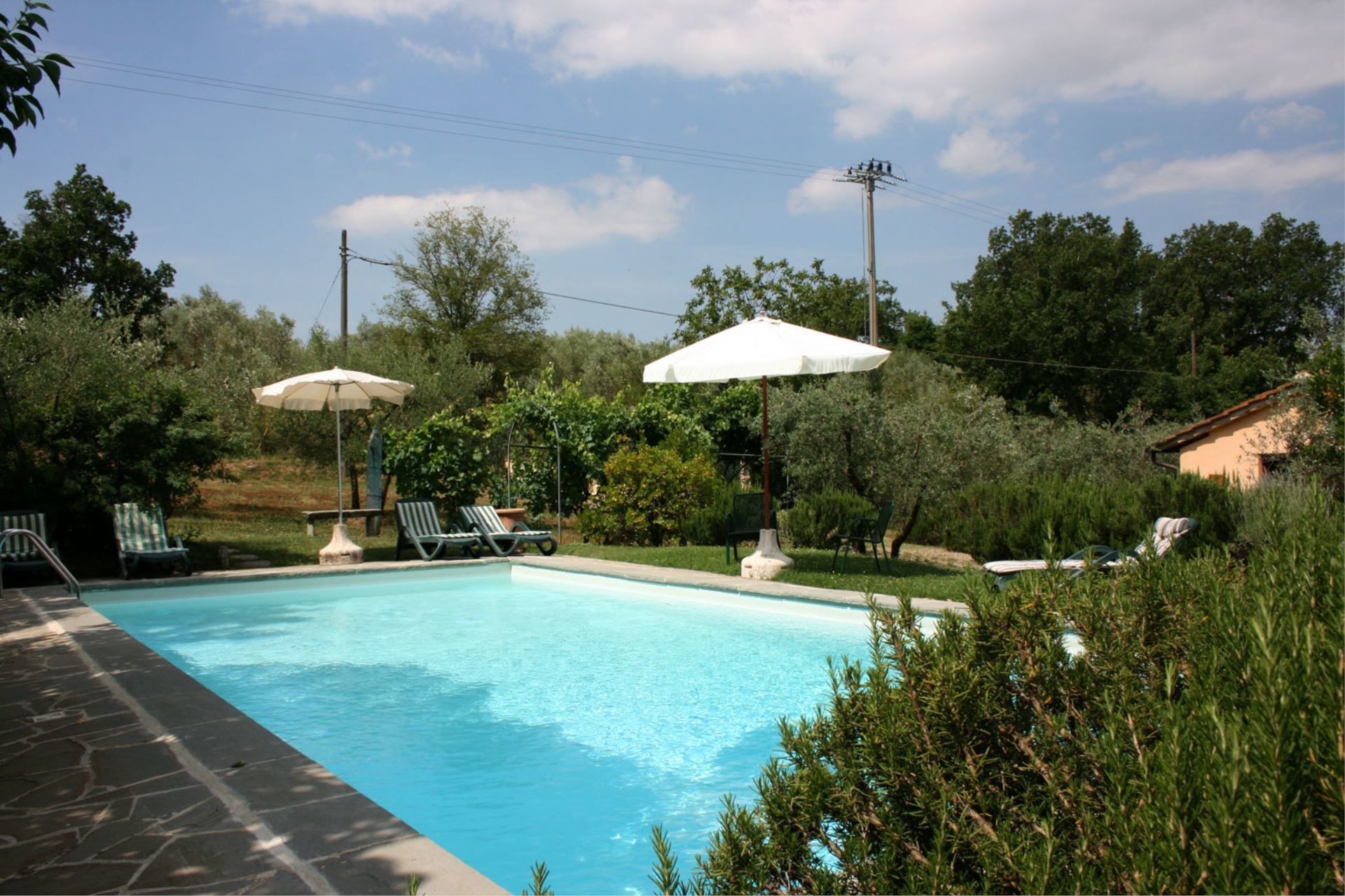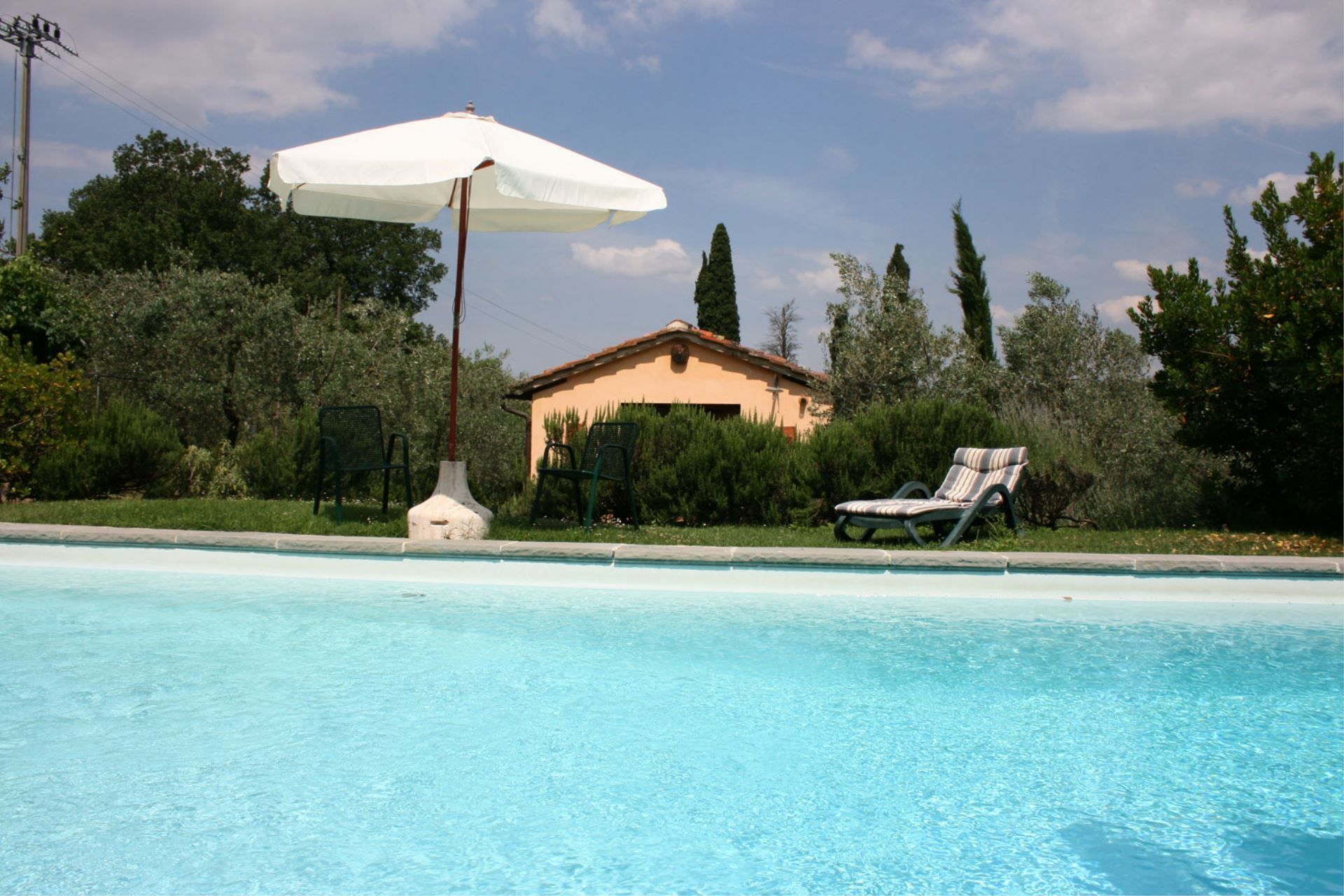 Piscine, espaces extérieurs et un court de tennis. Le bâtiment principal et la dépendance sont meublés de manière élégante et confortable, dotés d'installation de télévision par satellite et disposent d'un ample espace privé externe, d'un gazebo équipé de meubles de jardin et d'un barbecue. Parking ombragé. Une belle piscine clôturée de 5x10 mt (profondeur 1,20-2,20 mt) a été installée au milieu d'une zone verte, entre le bâtiment principal et la dépendance. Quelques centaine de mètres de la maison il y a un terrain de tennis privé (dim. 18x36 mt.), à utiliser en commun seulement avec les hotes de la maison VILLA DEGLI OLIVI et CASALE IL TRECENTO. Cette villa offre un jardin clôturé de 3.700 m2 avec un réseau de haut 1,20 m adapté aux animaux.