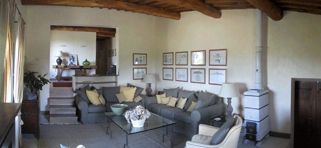 The property includes a cluster of four houses (composed by this villa and the property Montefili - see ID 1875) that once served as a stopping place on the ancient salt road, as well as approximately 10 hectares (20 acres) of land, including four hectares of vineyards, an olive grove, a stand of cypress trees, meadow and woods. When we bought the farm in 1994, it was semi abandoned and the buildings were in terrible disrepair. Since then we have dedicated ourselves to restoring them as closely as possible to their original form, using only local and environmentally compatible materials and personally supervising every phase of the restoration down to the last details