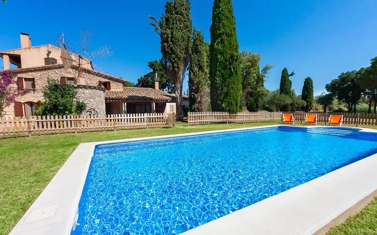 Moli del Mas à 1 km de Vall-Lloberga: Grande ancienne ferme accueillante "Mas Moli", de 3 étages, environnée par les champs. En bordure de la localité, à 500 m du centre de Vall-Llobrega, situation tranquille, ensoleillée, à 2 km de la mer. A usage privé: terrain 44'000 m2, piscine rectangulaire, cloturée (10 x 5 m, profondeur 150 - 170 cm, 01.04.-30.09.) avec marches intérieures. Barbecue. Infrastructures de la Maison: chauffage central (en sus). Accès en voiture (150 m chemin non goudronné). Place de parking près de la maison, garage individuel. Supermarché 2 km, restaurant 1 km, plage de sable "Palamos" 6 km, crique pour baignade 2 km. Port plaisance 7 km, terrain de golf 14 km, centre équestre 12 km. Attractions à proximité: Parque Acuatico 12 km. Veuillez noter: voiture recommandée. Adapté à l'organisation d'évènements. Le propriétaire n'accepte pas les groupes de jeunes.