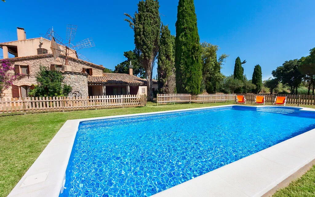 "Mas Moli", ancienne ferme 12 pièces 800 m2 sur 3 niveaux. Aménagement fonctionnel: séjour avec cheminée, Télévision numérique et écran plat. Sortie sur la terrasse. Salle à manger. Salle à manger. 1 chambre avec 3 lits (90 cm, longueur 190 cm). 1 chambre avec 1 grand-lit (160 cm, longueur 190 cm). Pièce en enfilade avec cheminée. Entrée. Cuisine (lave-vaisselle, 3 plaques à induction, grille-pain, bouilloire électrique, four micro-ondes, congélateur, cafetière électrique). 2 douches/bidet/WC. À l'étage supérieur: 4 chambres, chaque chambre avec: 2 lits (90 cm, longueur 190 cm). 1 chambre avec 1 grand-lit (160 cm, longueur 190 cm). 1 chambre avec 1 grand-lit (160 cm, longueur 190 cm). Sortie sur la terrasse. Bain/bidet/WC, douche/bidet/WC, bain/douche/bidet/WC. 2ème étage: salon avec cheminée et Télévision numérique. Sortie sur la terrasse. 2 grandes terrasses terrasse. Meubles de terrasse, chaises longues (12), loggia. A disposition: lave-linge, fer à repasser, moustiquaire, chaise haute pour enfant, lit bébé, sèche-cheveux. Internet (Connexion WIFI, gratuit). Garage (3 Voitures) près de la maison. Veuillez noter: adapté(e) aux familles. Maison non-fumeur. TV seulement ES. HUTG018427