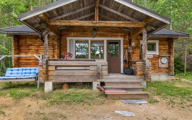 43 km au nord-est de Savonlinna. Lac Vetojärvi 15 m (longueur 2,5 km, largeur 500 m), eau profonde, fond sableux ferme. Propre bateau. Cabane en rondins 1992, séjour/cuisine avec 1 lit d'appoint, 2 chambres avec 2 lits chacune, grenier (escalier raide) avec 2 lits, dressing, sauna (chauffé au bois), véranda ouverte. Prise de courant extérieure pour la voiture. Une pente raide du chalet à la plage (ne convient pas aux petits enfants), il y a des escaliers et une main courante. Planche de surf en location. Abri adossé dans la cour avec barbecue et emplacement pour feu de camp. Sauna à fumée disponible pour un paiement séparé pendant l'été. Vélos à louer.