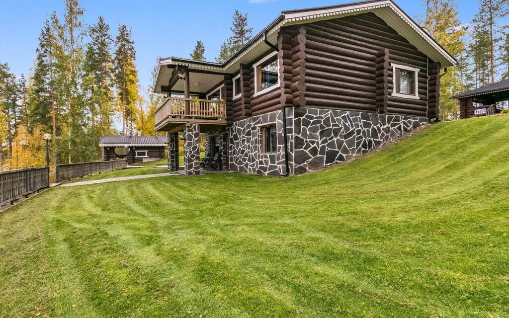 Nichée à 35 km au sud-est de Mikkeli, au cœur de la région des lacs de Finlande, cette authentique maison de vacances en bois rond offre une retraite nordique immersive. Construite en 1992, la propriété s'étend sur 2 étages et accueille jusqu'à 8 personnes réparties dans 4 chambres bien aménagées, chacune dotée de 2 lits. L'étage supérieur comprend un séjour-cuisine combiné, un salon confortable, un WC et 2 chambres, complétés par un balcon privé. L'étage inférieur dispose de 2 chambres supplémentaires, d'un WC, d'une buanderie, d'un dressing, d'une salle de toilette, d'un sauna à bois, de 2 douches et d'un accès direct à la terrasse.