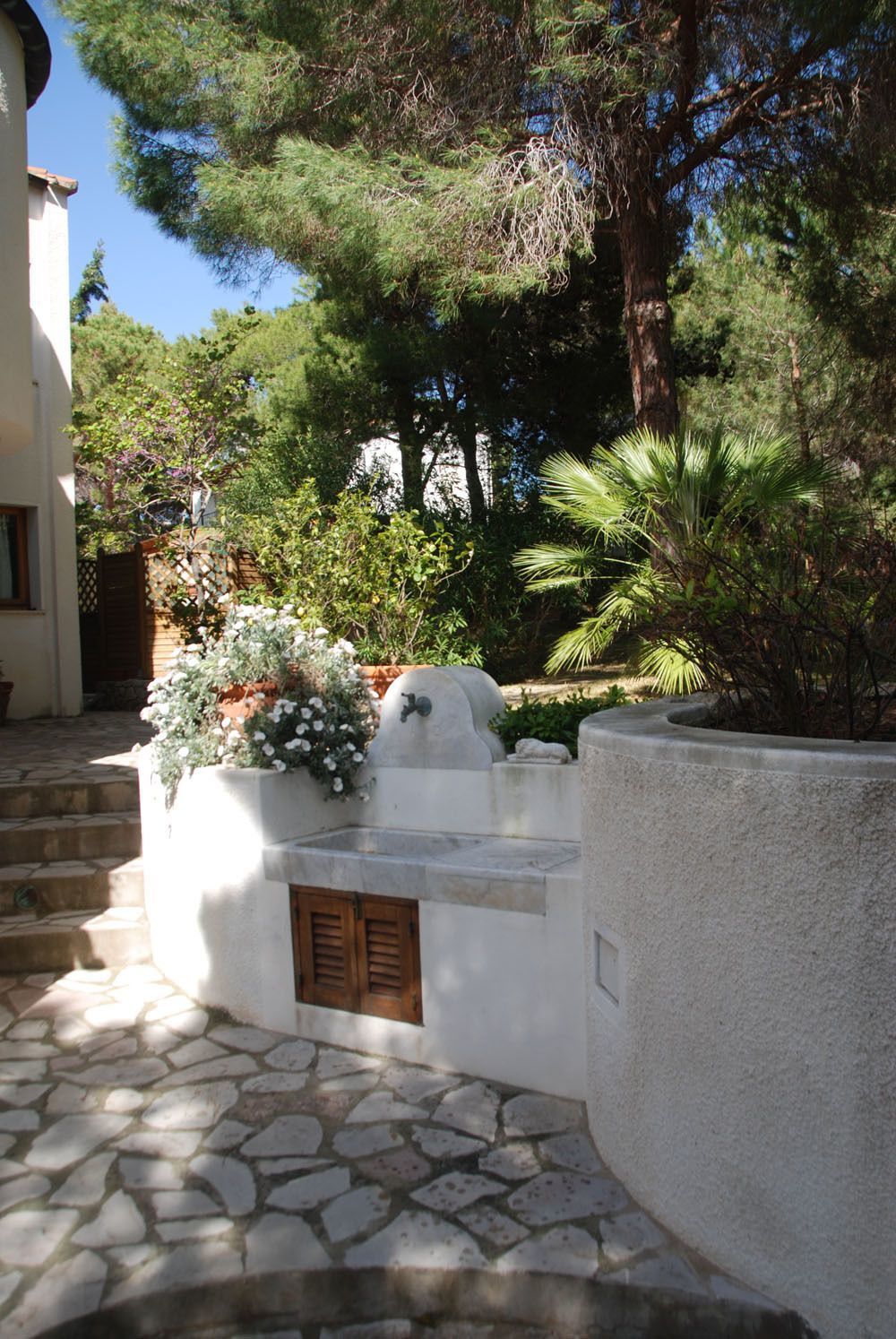 L''île d'Elbe, la principale de l'archipel Toscane, est un endroit très intéressant à visiter. Entourée d'une mer cristalline, l''île peut aussi proposer les paysages classiques de la campagne toscane : des vignes, des cyprès et de pins, ce qui rend le panorama un encadrement unique. Capoliveri, placé au sommet d'une colline avec une vue magnifique sur la mer et entourée de murs fortifiés, est l'un des coins les plus intéressants de l'île. Une fois une forteresse étrusque, le village est aujourd'hui un bijou, riche en bons restaurants, cafés et boutiques d'artisanat. Pendant la période estivale il offre aussi beaucoup d'événements intéressants tels que des concerts, des rendez-vous culturels et des marchés enogastronomiques. Madonna delle Grazie se situe juste à côté de Capoliveri, sur une position panoramique exceptionnelle en face du magnifique golfe et au-dessus de la plage d'où il tire son nom. De n'importe quel point sur le joli jardin ou de la terrasse la vue est admirable et les plusieurs espaces extérieurs ombragé ont été aménagés pour créer une petite oasis où sombrer dans l'oubli. La piscine à débordement a été placé dans l'un des points les plus panoramiques et donne l'idée d'être simplement dans le milieu de la mer. La maison est meublée dans un style marin, chic et sobre au même temps, avec la particularité de grandes baies vitrées ouvrant sur les terrasses et sur le jardin, qui donnent une idée de continuité avec l'extérieur. Le logement est composé d'une maison principale et d'un appartement supplémentaire, à un niveau inférieur, ce qui donne la possibilité à un grand groupe de conserver une certaine indépendance. Un accès totalement privé (en marches) mène à la mer, où une agréable plate-forme couverte a été installé et meublé pour se protéger du soleil pendant les journées les plus chaudes. À une courte distance est également possible de découvrir la célèbre plage de sable appelé "Innamorata", une magique demi-lune entre les collines rocheuses et la belle mer.