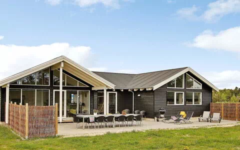 Vous trouverez cette spacieuse maison de vacances dans un cadre idyllique, non loin de la plage et de la mer. C'est le point de départ idéal pour les sportifs en tout genre: il y a de nombreuses opportunités de randonnée. L'intérieur est décoré avec goût et les pièces sont toutes très lumineuses, grâce notamment aux larges fenêtres. La maison se compose d'une cuisine moderne tout équipée, qui donne directement sur un salon / salle à manger. Cette pièce sera un point de rassemblement idéal pour tout le monde, que ce soit sur les canapés ou devant la télévision. Depuis le salon vous accédez directement à la terrasse sur laquelle vous pourrez vous reposer sur le mobilier de jardin et profiter du soleil. Tandis que les enfants s'amuseront dans le jardin (il y a notamment un bac-à-sable et des balançoires), vous pourrez vous poser à l'abri d'un arbre pour bouquiner. Le soir sera même l'occasion d'organiser des barbecues. On compte au total sept chambres, toutes aménagées avec deux lits simples. Toutes ces chambres sont bien aménagées, pour un séjour placé sous les meilleurs hospices. Cela étant, la mezzanine vous offrira un espace de vie supplémentaire, ainsi que l'opportunité d'accueillir quatre personnes en plus pour toute la durée de votre séjour. La maison dispose d'un système de chauffage géothermique, ce qui vous permettra de consommer de manière plus durable et de réduire vos coûts énergétiques. Les propriétaires ont même pensé aux plus jeunes et mettent à votre disposition une chaise haute et un lit bébé. Le coin piscine est dédié à votre bien-être: en plus de la piscine dans laquelle vous pourrez améliorer votre nage avec le système de nage à contre-courant, les enfants pourront s'amuser sur le toboggan. A proximité se trouve un sauna dans lequel vous pourrez vous détendre et vous reposer. Il y a également un jacuzzi de 4-6 places: profitez des jets massant pour vous détendre aussi longtemps que vous le voudrez. En face du salon se trouve une salle de jeux dans laquelle vous pourrez vous retrouver pour vous défier au ping-pong, au billard, aux fléchettes ou au baby-foot. Il y a également un bar et une télévision avec PlayStation, ainsi qu'une Wii. Vous ne vous ennuierez certainement pas ! A cause de la taille de la maison, le prix pour le ménage final diffère des prix listés. Le paiement des consommations supplémentaires, du ménage et de la caution, doivent se faire en liquide à la gérance. Pas de location aux groupes de jeunes. 1 salon: poêle à bois, chaîne HiFi avec lecteur CD, lecteur DVD, WiFi, TV, câble TV, chaise haute 7 chambres: (2 lits simples) + (2 lits simples) + (2 lits simples) + (2 lits simples) + (2 lits simples) + (2 lits simples) + (2 lits simples), lit bébé 1 mezzanine: (4 lit simples) Cuisine: cuisinière électrique, frigo-congélateur, congélateur 140 - 199 l., four, hotte, cafetière, lave-vaisselle, machine à laver, sèche-linge Salle de bain / WC: WC, lavabo, douche, chauffage au sol, sauna 2 x Salle de bain / WC: WC, lavabo, douche, chauffage au sol Jeux: table de ping-pong, baby-foot, billard, fléchettes, console de jeux vidéo En plus: terrasse, terrasse couverte, piscine et jacuzzi, chauffage central, chauffage géothermique, jeux dans le jardin, jardin de 1600 m², mobilier moderne, lieu touristique, maison non-fumeur Caution: DKK 4000.