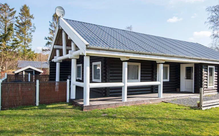 Holiday cottage located in the scenic Fuglslev not far from Ebeltoft. This house is for families who want to live in beautiful surroundings, but still be near a major tourist destination. The house has a large mezzanine, two bedrooms and open kitchen and living room. There are high-vaulted ceilings in kitchen and living room, providing a feeling of large rooms. Alongside the large beams the house is built in it gives the house a rustic and open feeling. From the living room there is access to the terrace where you can enjoy the tranquillity of the area or the horses grazing in the neighbouring plot.