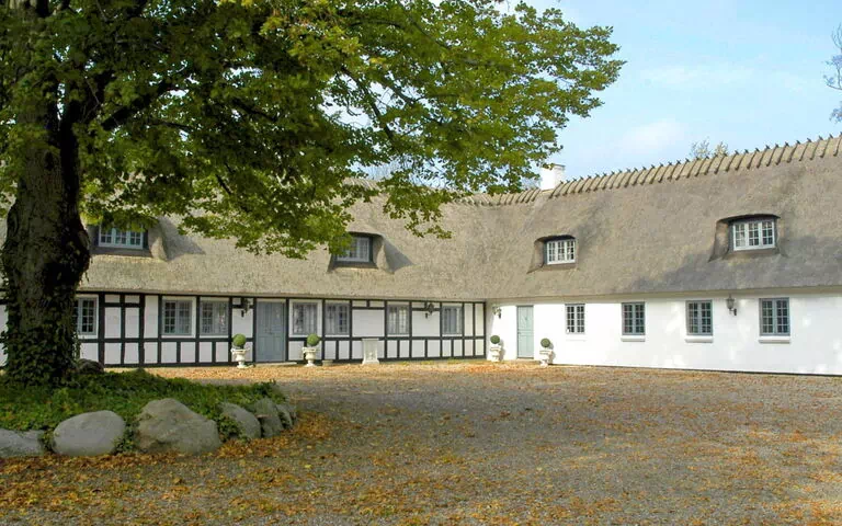 "Rosenholm" is located at Ronæs on Funen, directly by the Little Belt and Gamborg Fjord. The manor house is located in a 16,700 m² park with shady trees and several lakes directly to the private inlet beach.