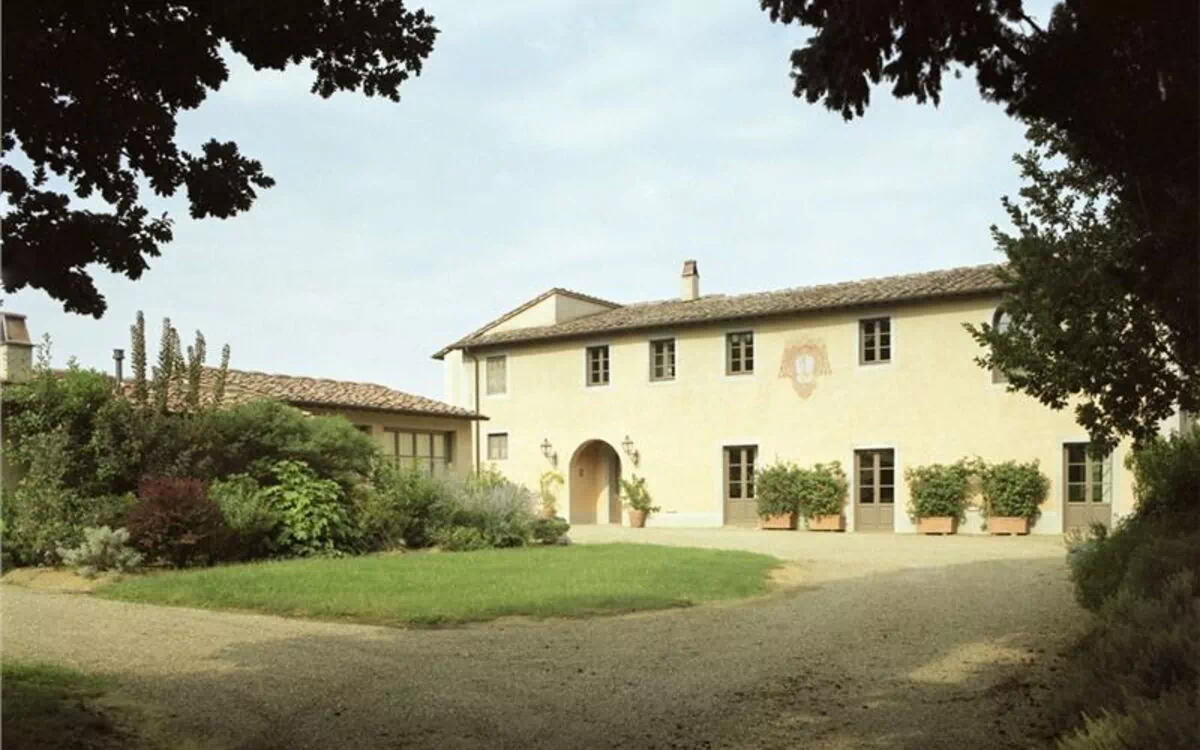 Traveling down a long cypress-lined drive, across an estate of olive groves and vineyards, one arrives at this ancient and traditional Tuscan farmhouse which has been restored with skill and care.