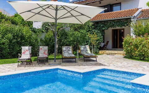 Maison mitoyenne "Višković", de 2 étages. À 2 km du centre de Rovinj, situation tranquille, ensoleillée, à 450 m de la mer, à 450 m de la plage. A usage privé: terrain 200 m2 (clôturé), jardin, piscine rectangulaire (7 x 3 m, 24 m2, profondeur 140 cm, disponibilité saisonnière: 01.Mai. - 01.Oct.). Douche extérieure. Infrastructures de la Maison: accès internet. Place de parking près de la maison sur le terrain. Magasins, restaurant 300 m, arrêt de bus 1.4 km, plage de graviers, plage de rochers 450 m. Tennis 1 km, chemins de randonnées pédestres depuis la maison, piste cyclable 500 m. Le propriétaire n'accepte pas les groupes de jeunes.