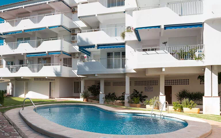 Petite résidence ancienne "Inocencia", de 4 étages. Dans le quartier de Montañar I, situation centrale, à 50 m de la mer, route à traverser. En commun: jardin (clôturé) avec pelouse et plantes, piscine (01.01.-31.12.). Douche extérieure, parking public possible dans la rue. Magasins, supermarché 500 m, restaurant 100 m, plage de sable 1.5 km, plage de galets 50 m. Port de plaisance 1 km. Veuillez noter: sans ascenseur.