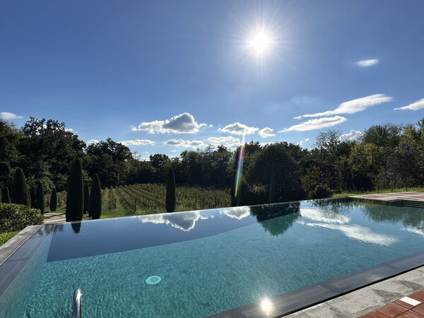 grosses Haus in toskaner Styl zwischen Olivenbäumen und Weinreben